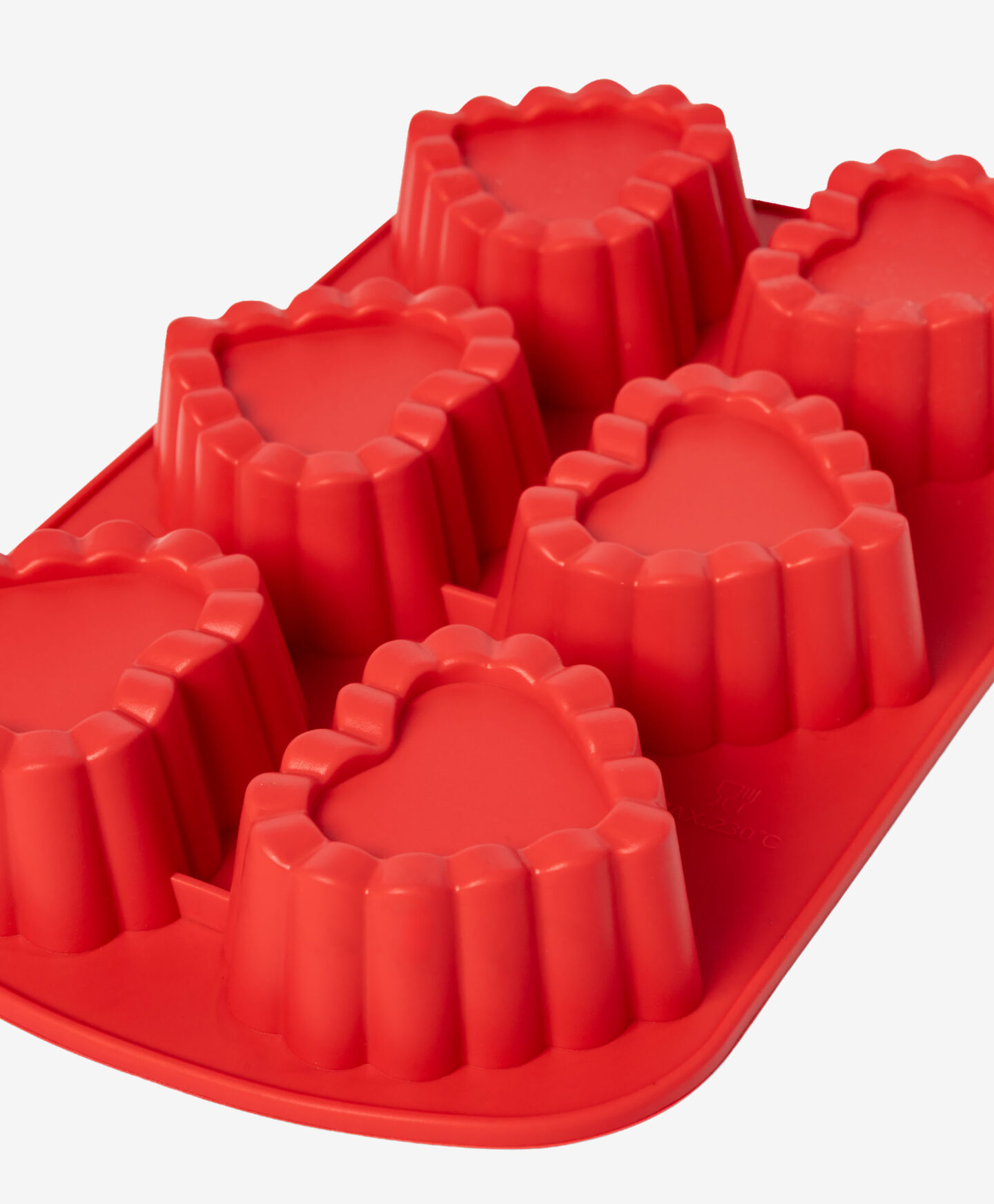 A forma de silicone para forno permite preparar 6 muffins em forma de coração. Perfeita para o Dia dos Namorados ou para sobremesas especiais. O silicone flexível é fácil de limpar e facilita a remoção.