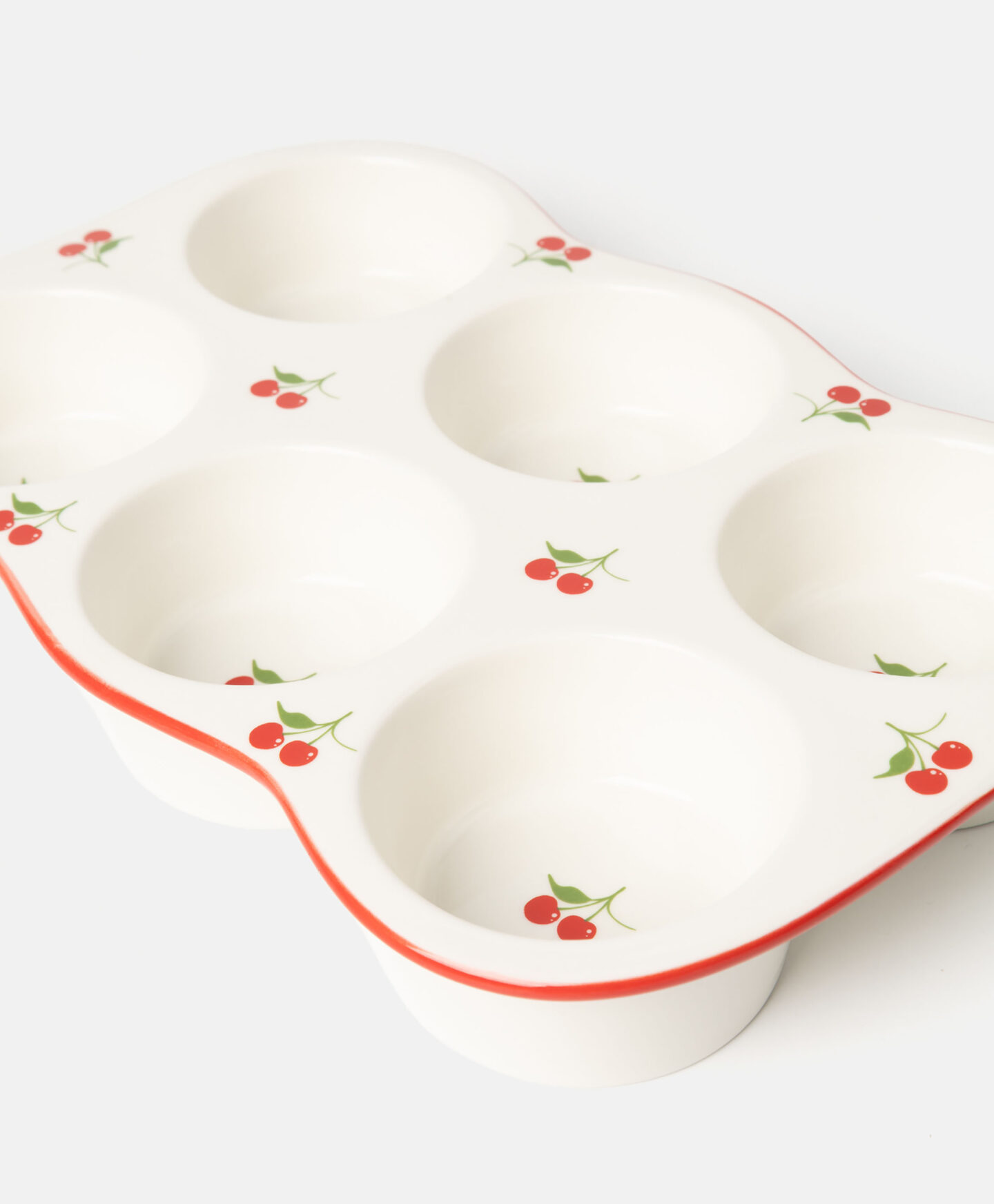 A forma para muffins em porcelana, com padrão de cerejas, cria sobremesas de forma encantadora. É durável, resistente ao calor e fácil de limpar. O design único traz cor aos dias na cozinha. É uma ótima ideia para oferecer como presente a amantes de pastelaria.