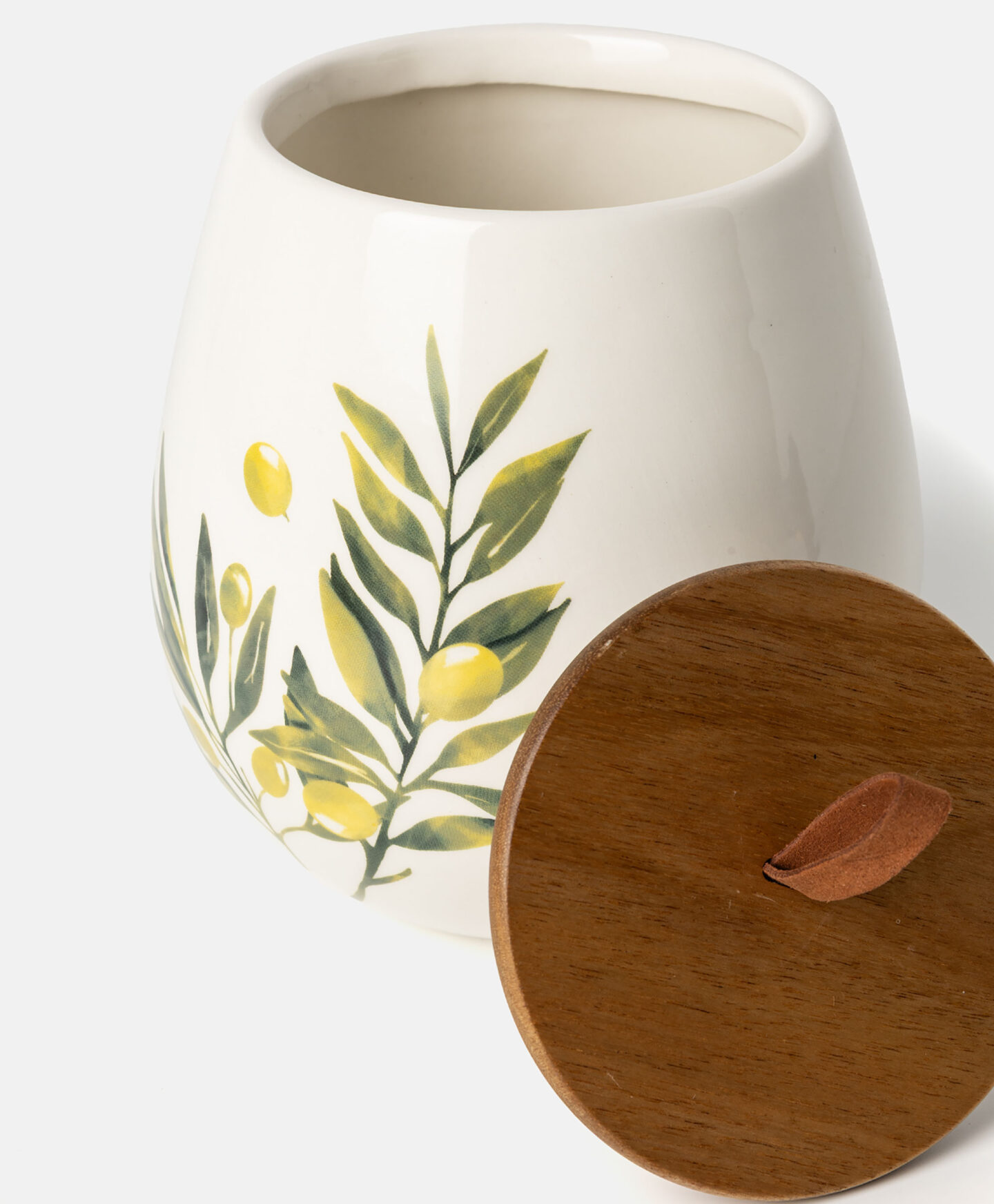 O frasco em dolomite, com tampa em madeira, marca a diferença em qualquer cozinha. O design subtil com ramos de oliveira acrescenta um toque artístico e traz a paisagem mediterrânica. A estrutura resistente garante que será o teu preferido durante muito tempo. Perfeito para guardar alimentos a granel.