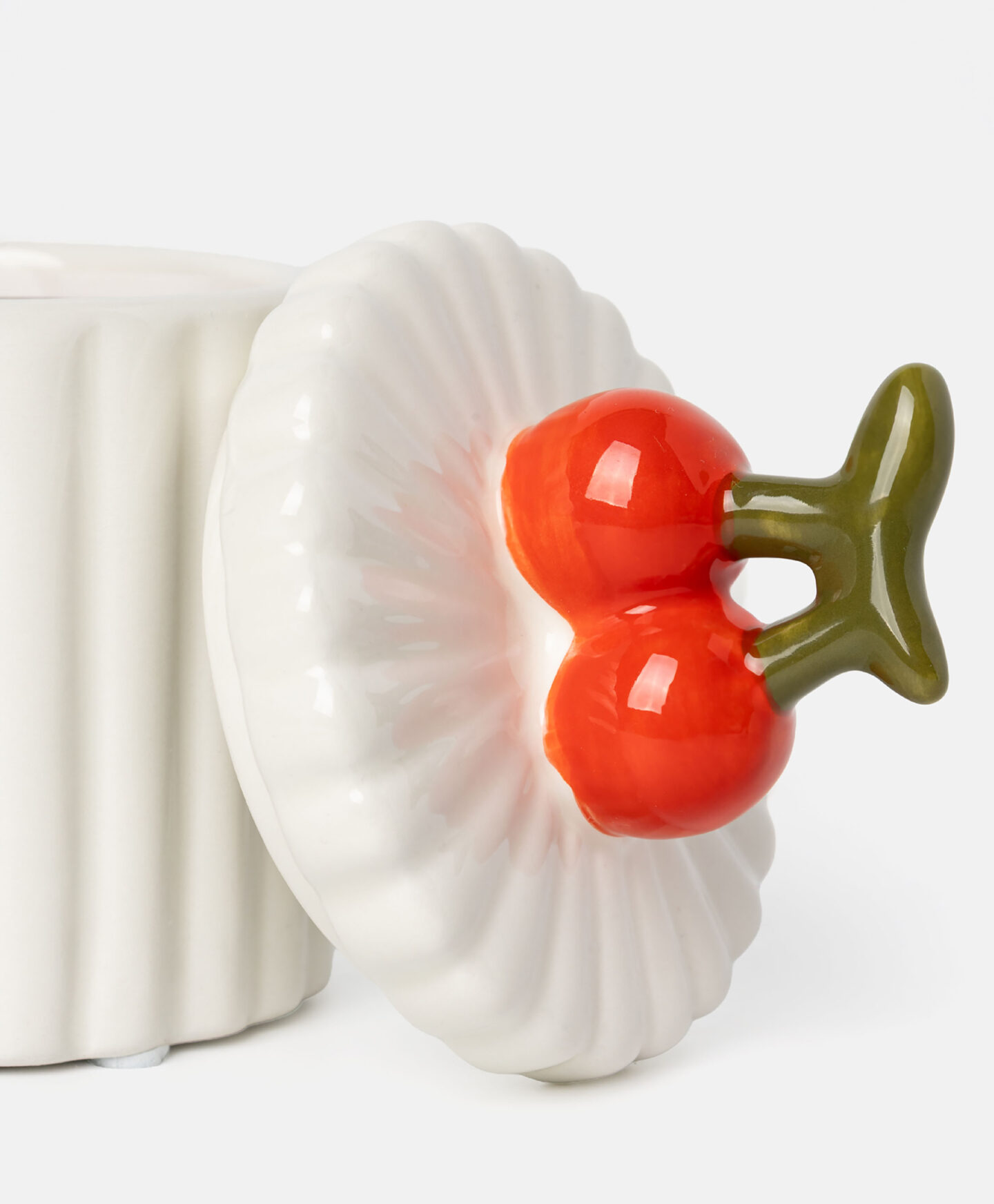 O frasco em dolomite com cerejas 3D é um complemento encantador para qualquer cozinha. A tampa hermética mantém os alimentos frescos por mais tempo. Perfeito para doces, frutos secos e especiarias. É durável, resistente a riscos e fissuras e fácil de limpar.