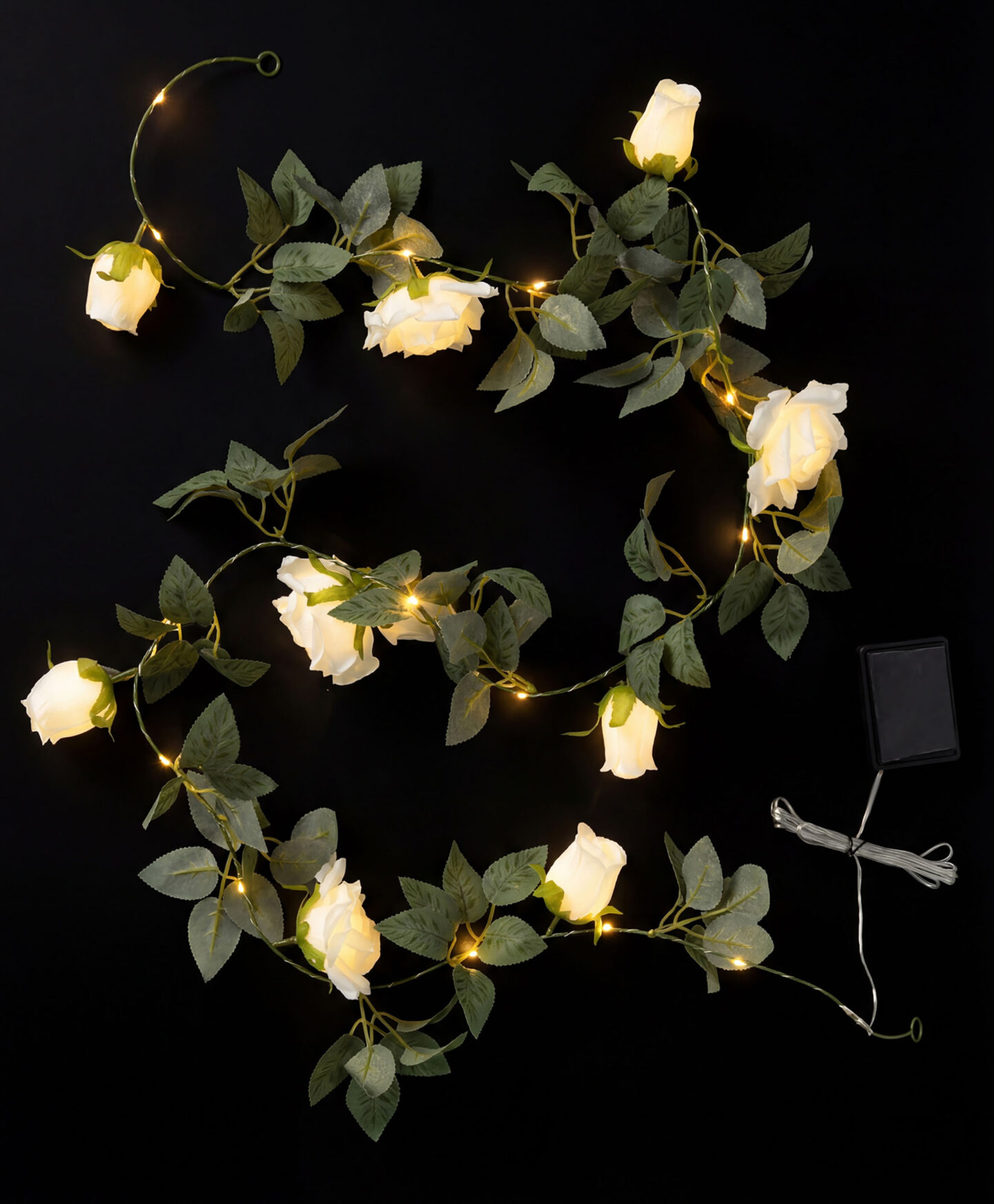 Grinalda de luzes solares com rosas