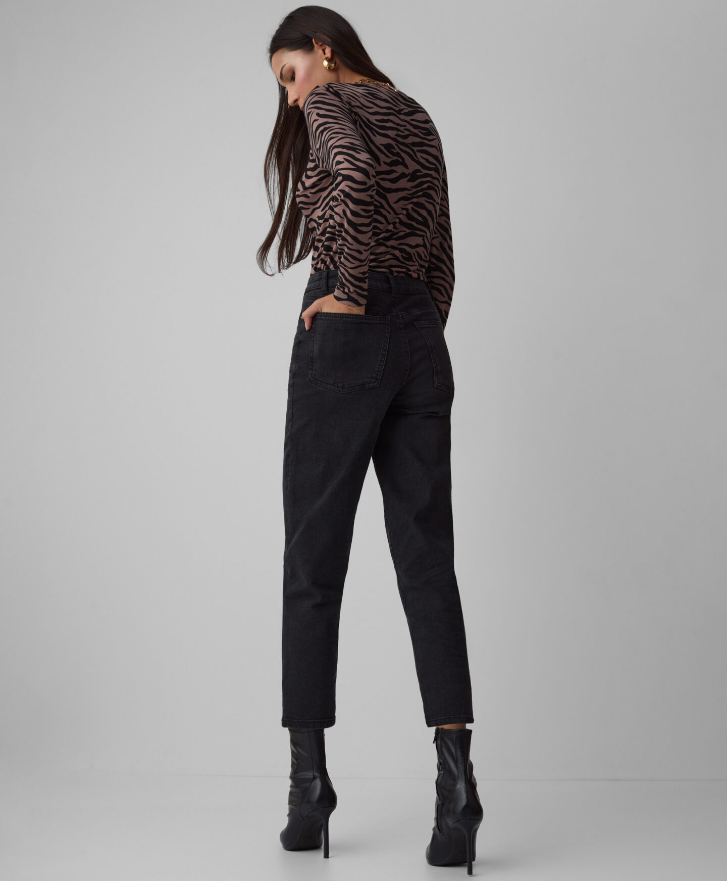 As jeans mom cut são um sucesso intemporal que combina conforto com um design elegante. Perfeitas para usar no dia a dia, combinam com t-shirts largas, camisolas casuais ou camisas elegantes. A cor clássica permite combiná-las com muitas peças do teu guarda-roupa.