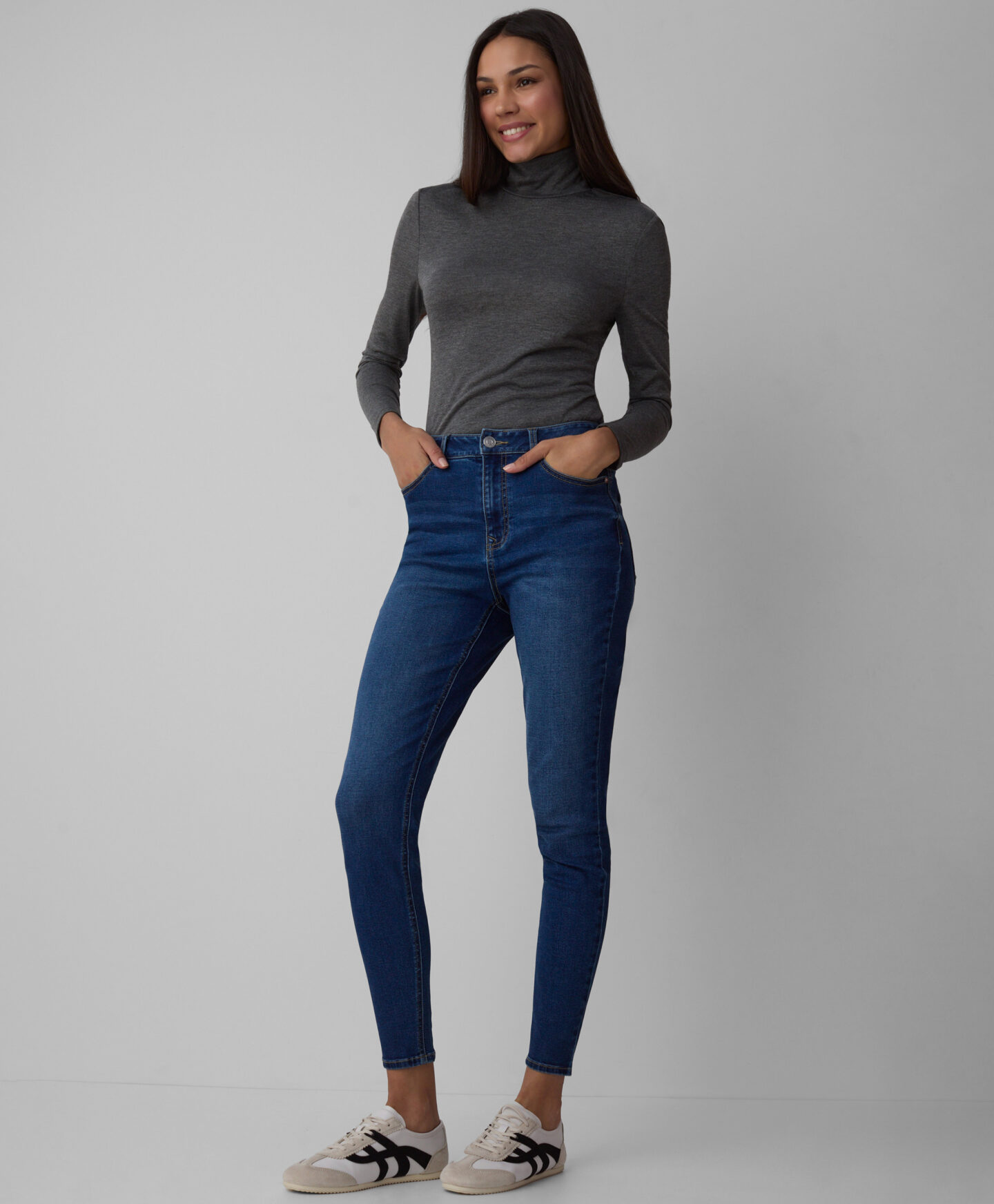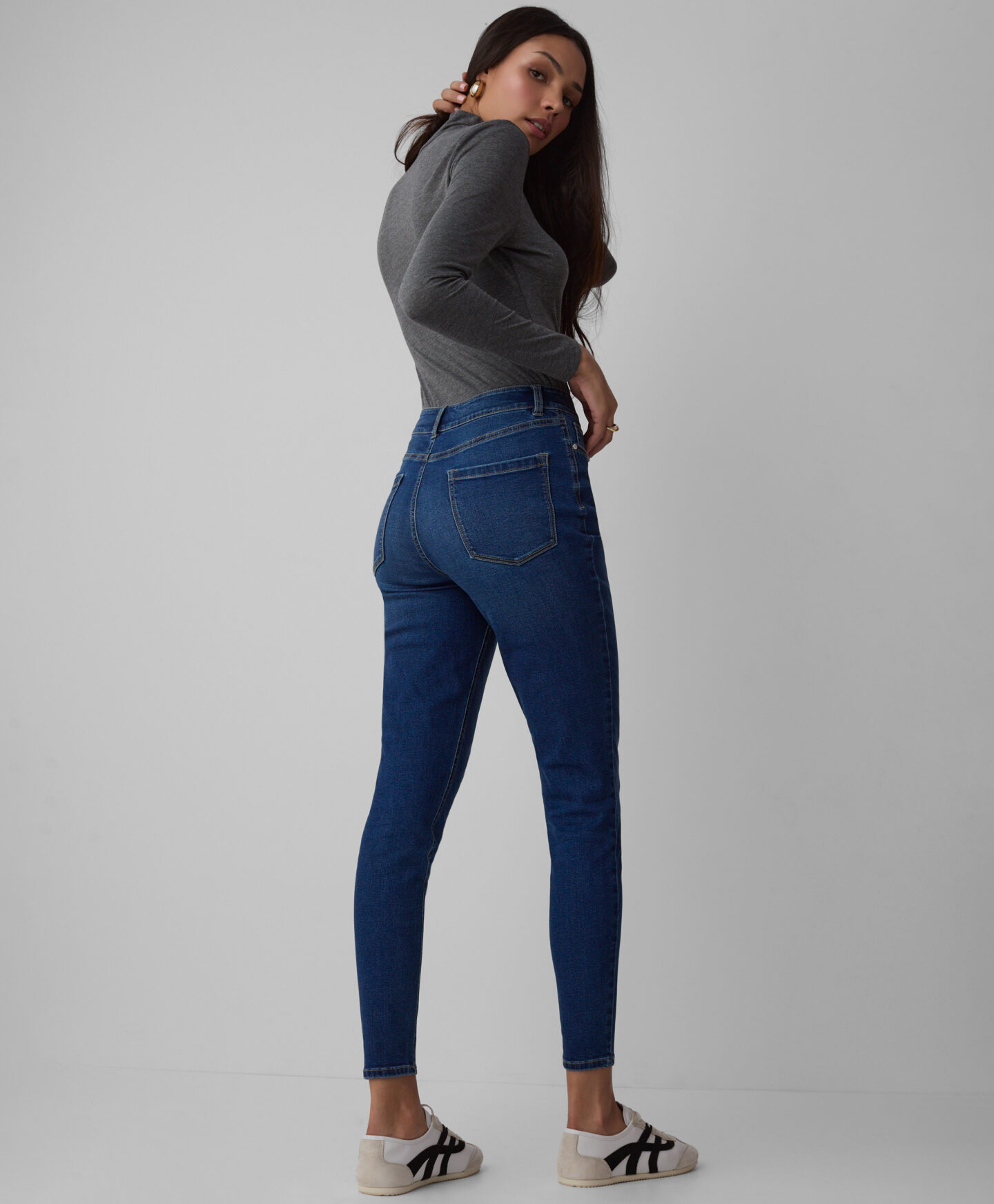 As jeans skinny cut são um básico essencial no guarda-roupa. Têm um corte justo que realça a silhueta. Produzidas em ganga elástica, proporcionam conforto e liberdade de movimentos. O material resistente garante que mantêm a forma mesmo após várias lavagens.