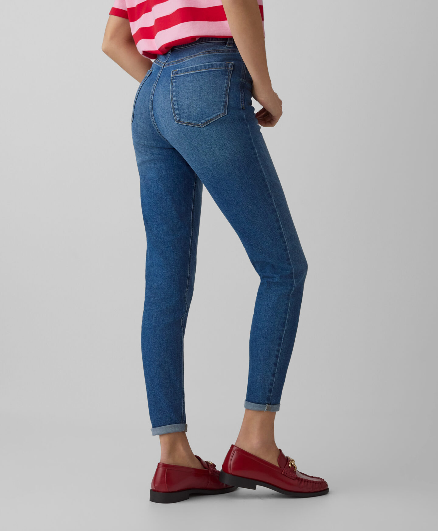 As jeans skinny fit realçam a silhueta e combinam com vários estilos, desde o casual ao mais formal. Cria um look com camisas, camisolas oversized ou com capuz. O material elástico oferece liberdade de movimentos e conforto.