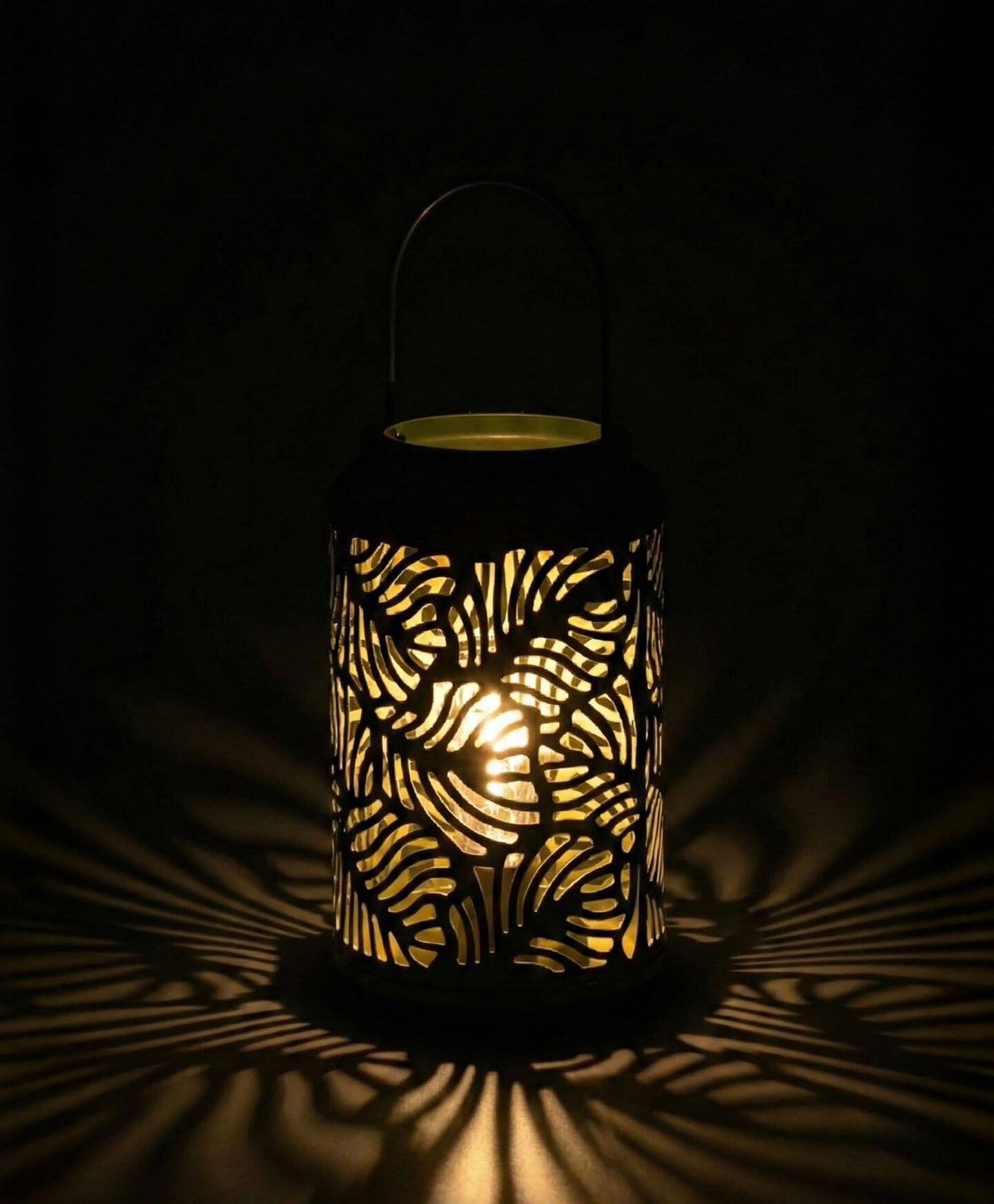 A lanterna LED em metal será o teu must-have na tua mesa da varanda ou do jardim. A pega é confortável e o design rendado difunde a luz de forma suave e acolhedora. Decora tanto interiores como exteriores. Desfruta desta luz acolhedora todos as noites!