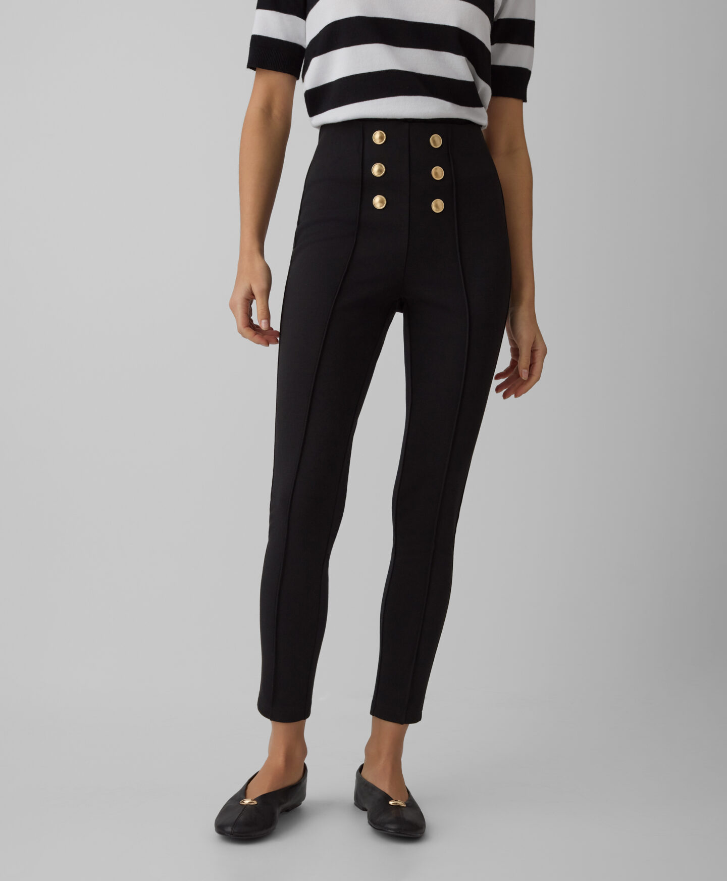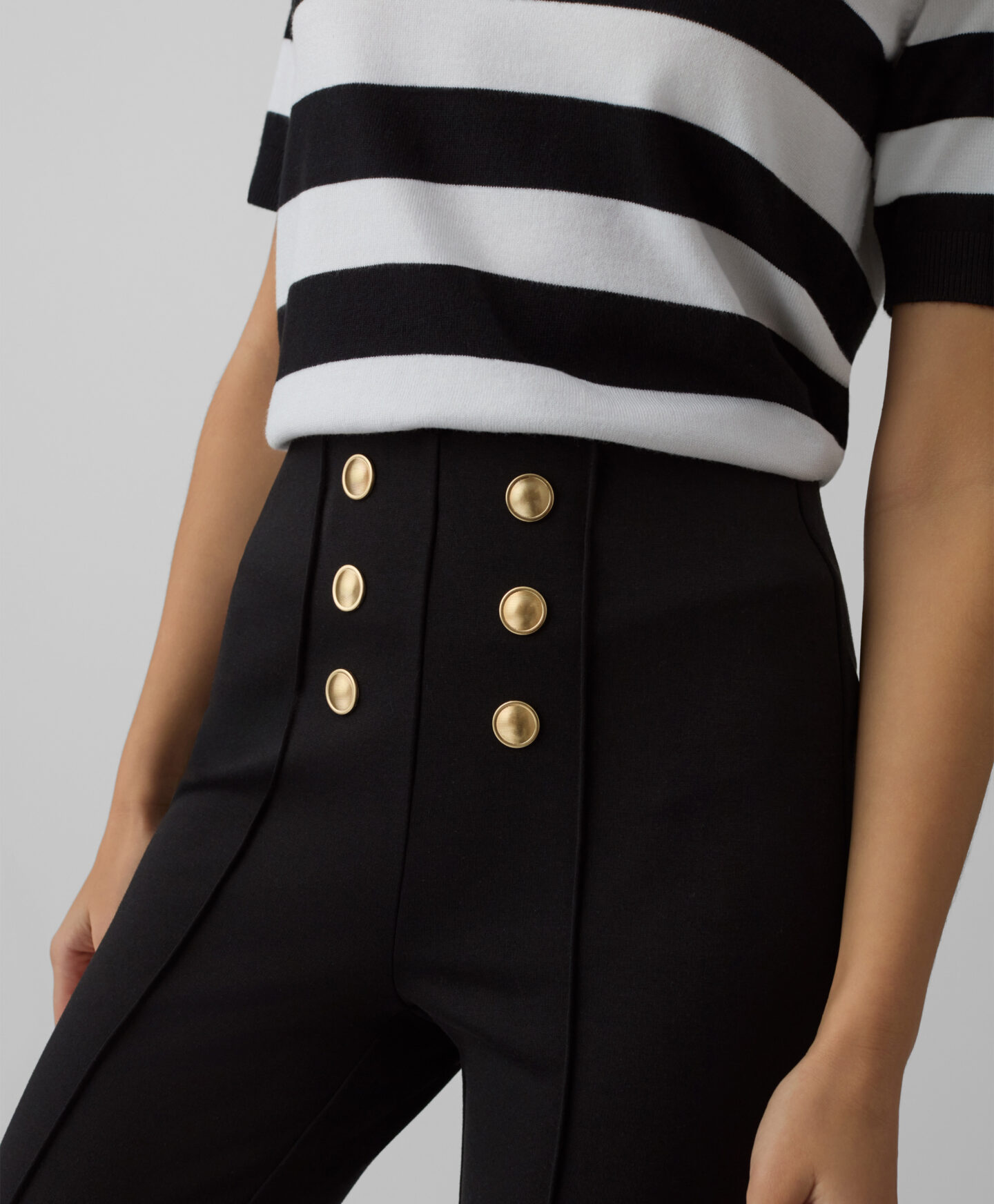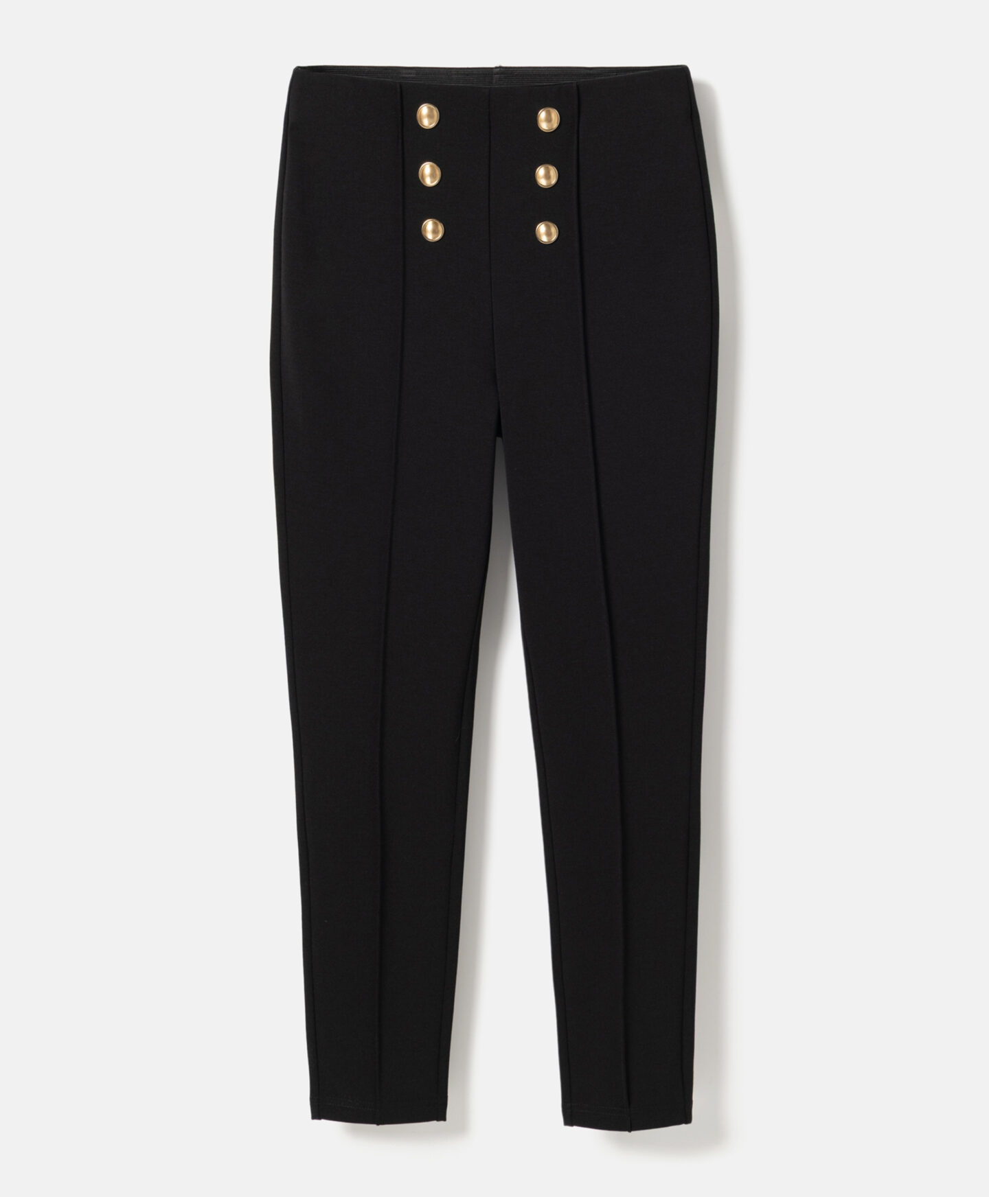 As leggings com botões são uma solução confortável para quem valoriza um look moderno. Os botões decorativos dão um carácter elegante. São ideais tanto para o dia a dia como para ocasiões mais formais. O material elástico garante conforto ao vestir e o corte justo realça a silhueta.