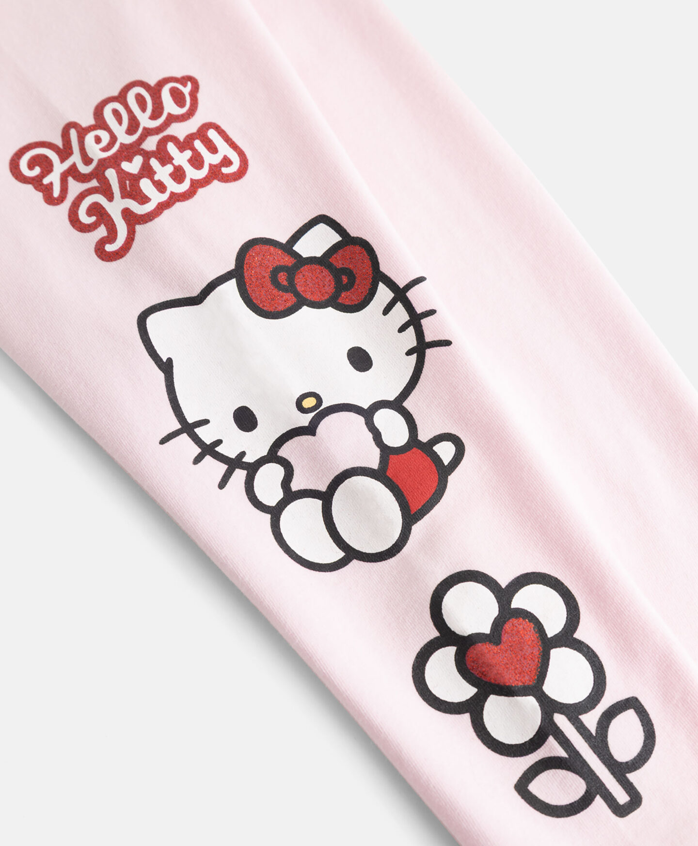 As leggings Hello Kitty para bebé, com elevado teor de algodão, criam um conjunto com uma camisola da coleção. São uma ótima escolha tanto para sestas como para brincadeiras. Permitem liberdade de movimentos, são confortáveis e envolvem de forma suave a pele sensível da criança.