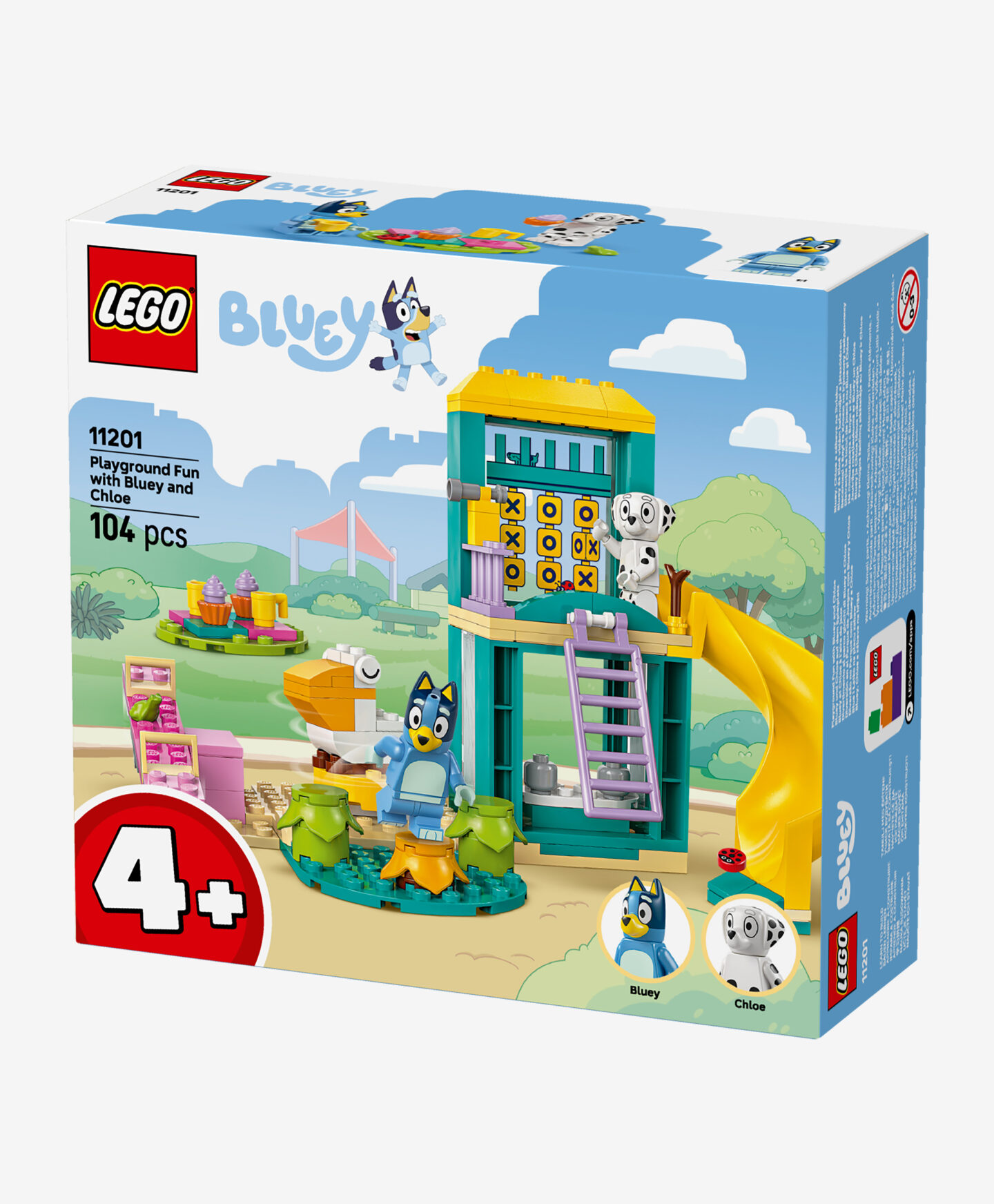 O LEGO® Bluey Diversão no Parque é ideal para fãs da animação. Inclui figuras da Bluey e da Chloe num parque colorido com baloiço, escorrega e torre com telescópio. Para crianças a partir dos 4 anos.
