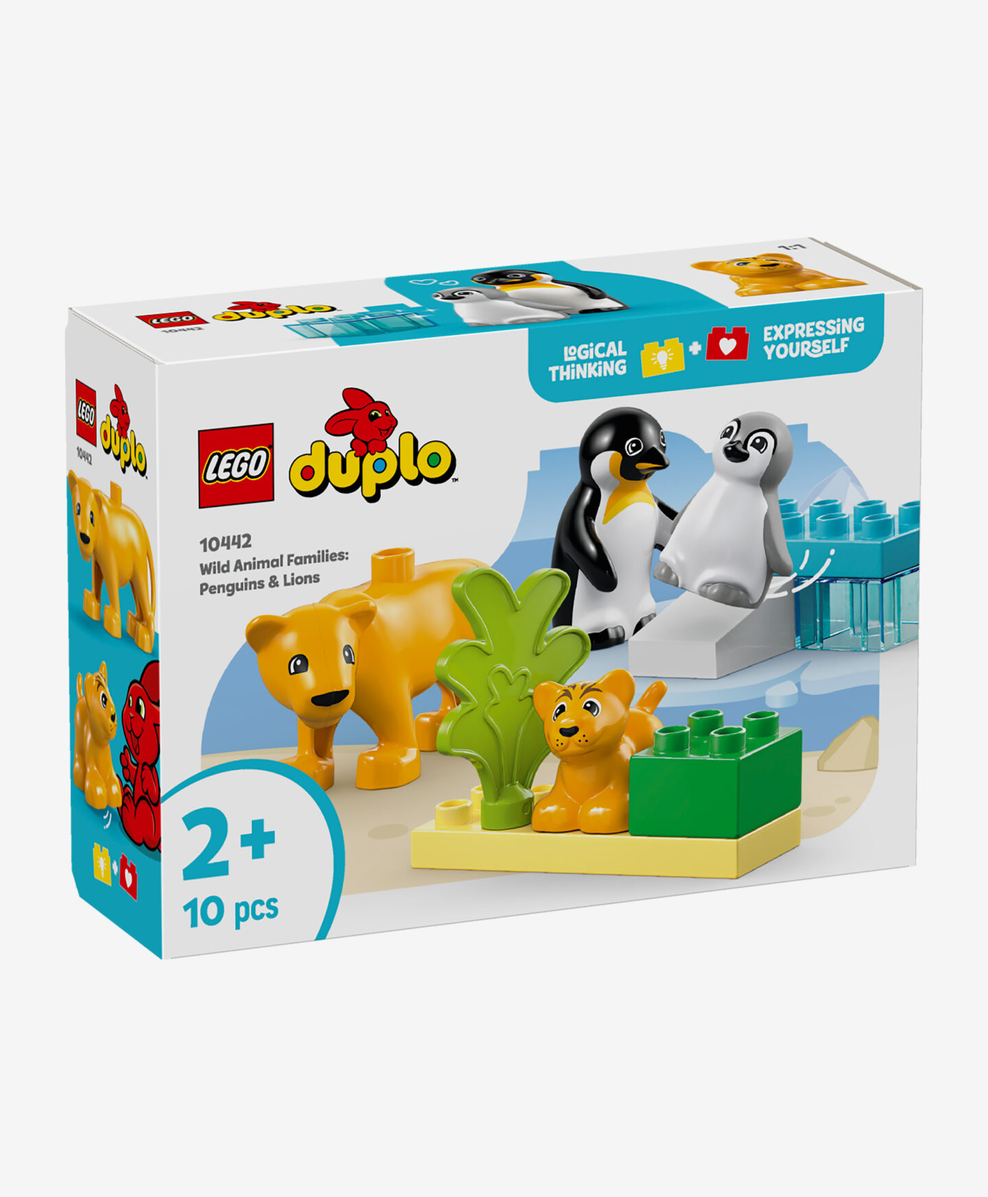 O LEGO® DUPLO® Famílias de Animais Selvagens: Pinguins e Leões mostra às crianças a natureza. Inclui figuras de animais e blocos grandes, seguros e fáceis de manusear.