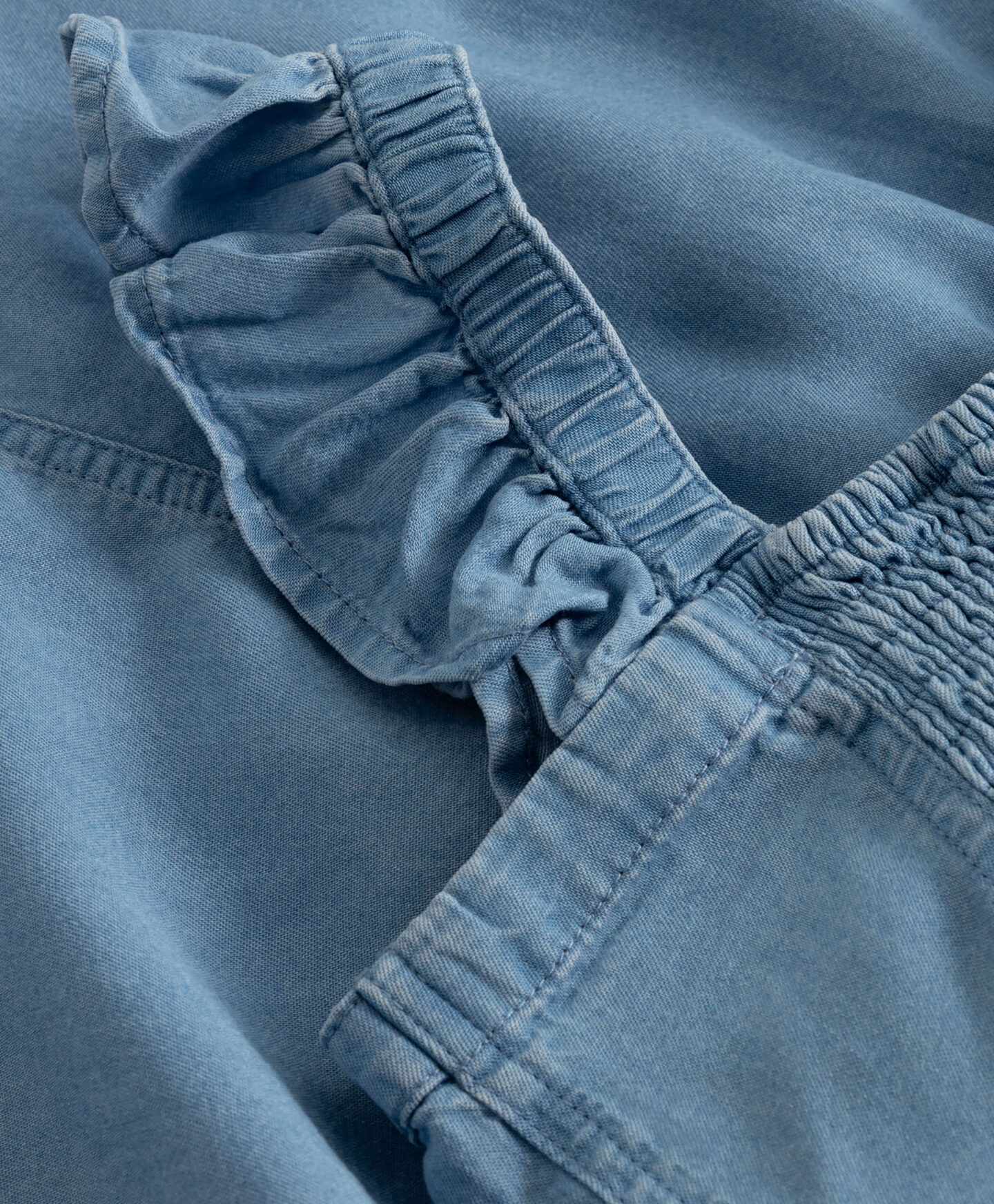 O macacão de ganga 100% lyocell é o perfeito 2 em 1 – combinado com sandálias ou sapatilhas fica incrível! Tem uns folhos decorativos e uma costura resistente o que o torna no maior hit do verão! Com uma cintura elástica para dar estabilidade, esta peça é clássica e suave e a sua ganga assenta na perfeição para garantir liberdade de movimentos. Ideal para usares no dia-a-dia.