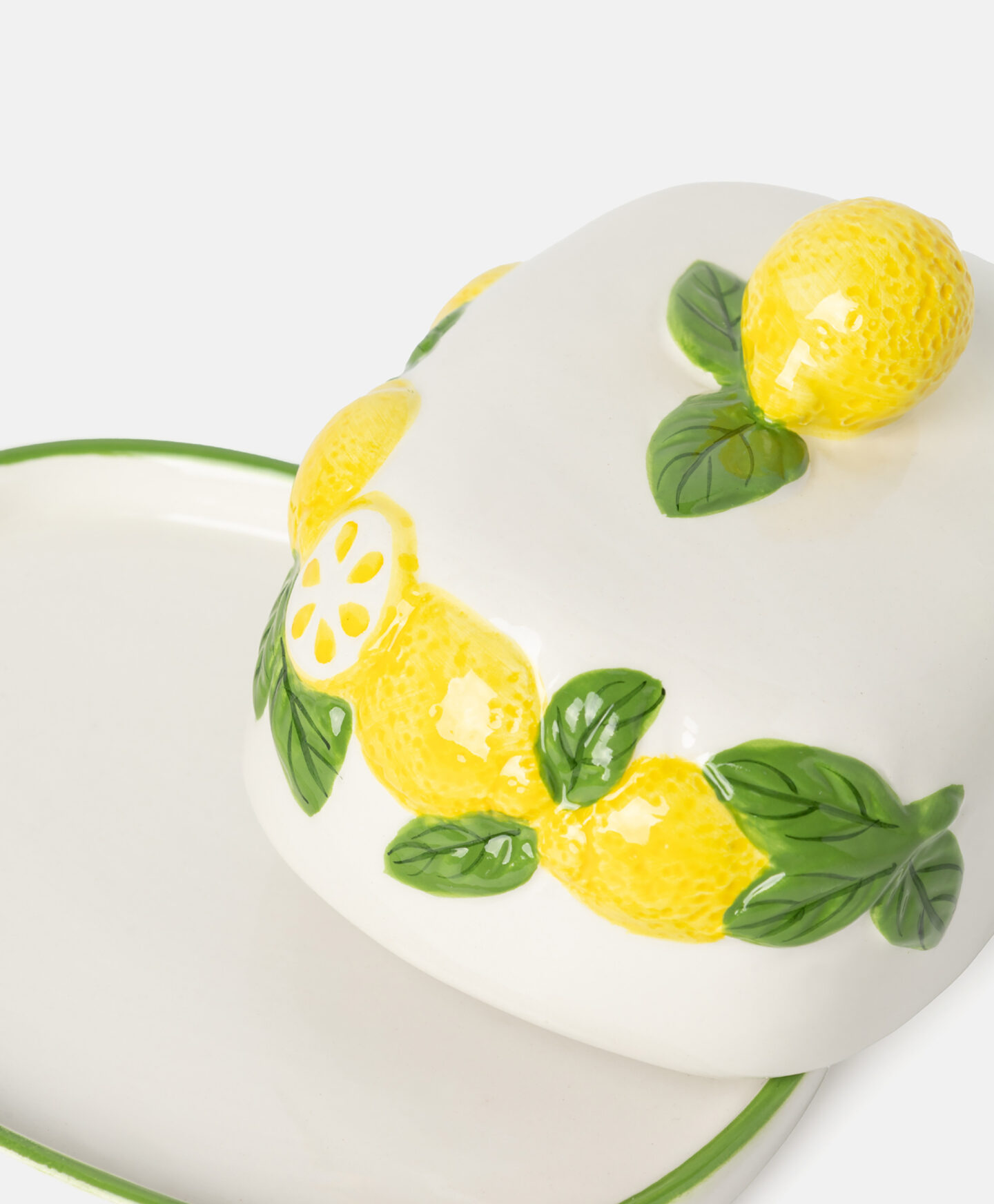 A manteigueira em dolomite com limões em relevo, traz o verão para a tua cozinha. É resistente e durável.