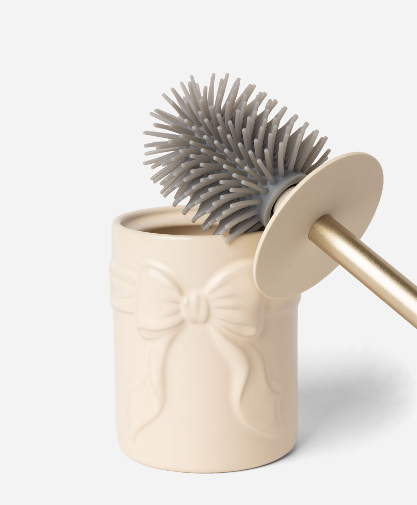 O piaçava com laço cria o conjunto perfeito com outros acessórios da mesma coleção. A cor encantadora e o design único combinam com várias decorações. A escova é fácil de limpar, e a pega ergonómica facilita o uso no dia a dia.