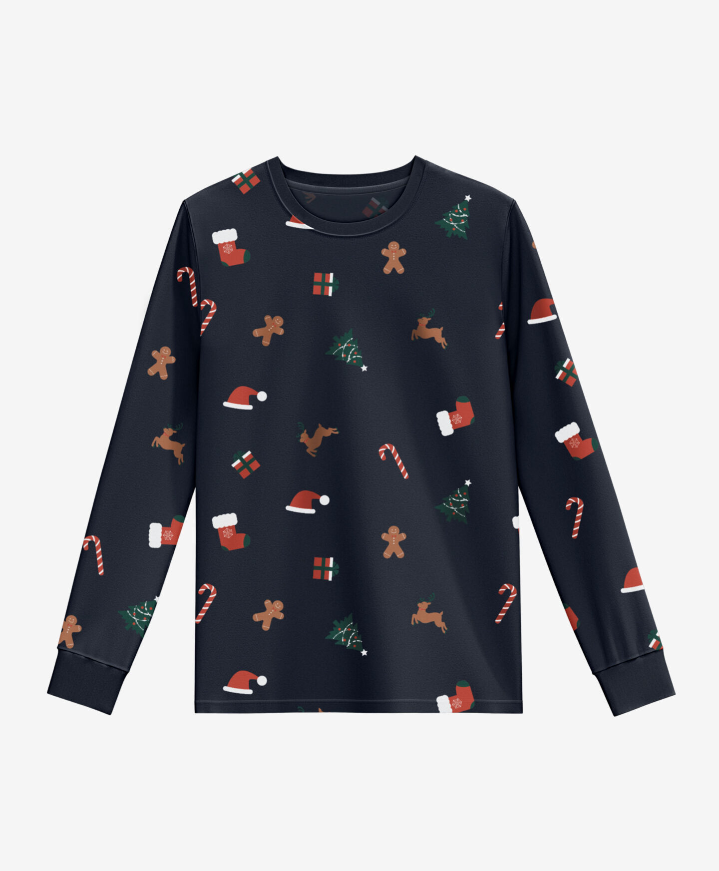 O pijama com padrão de Natal, em algodão suave e respirável, é ideal para as noites de inverno. O design encantador adiciona um toque mágico aos dias acolhedores passados em casa. Uma ótima ideia para oferecer como presente.