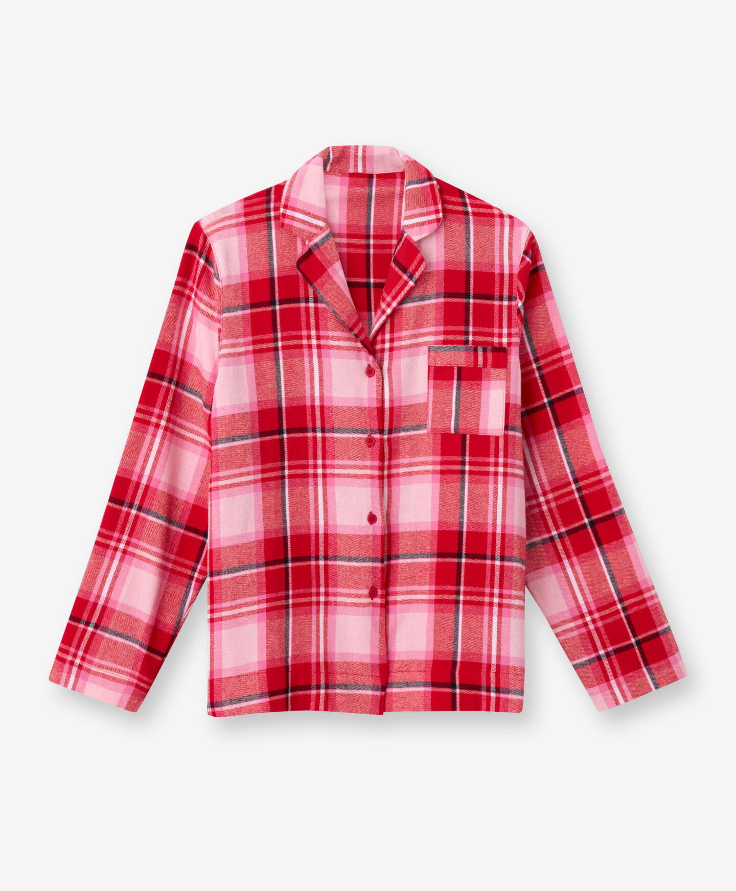 O pijama em xadrez, 100% algodão, é quente, macio e delicado para a pele. Ideal para noites de inverno acolhedoras em casa, garante um sono confortável. O padrão clássico e as cores de Natal tornam-no uma ótima ideia para um presente.