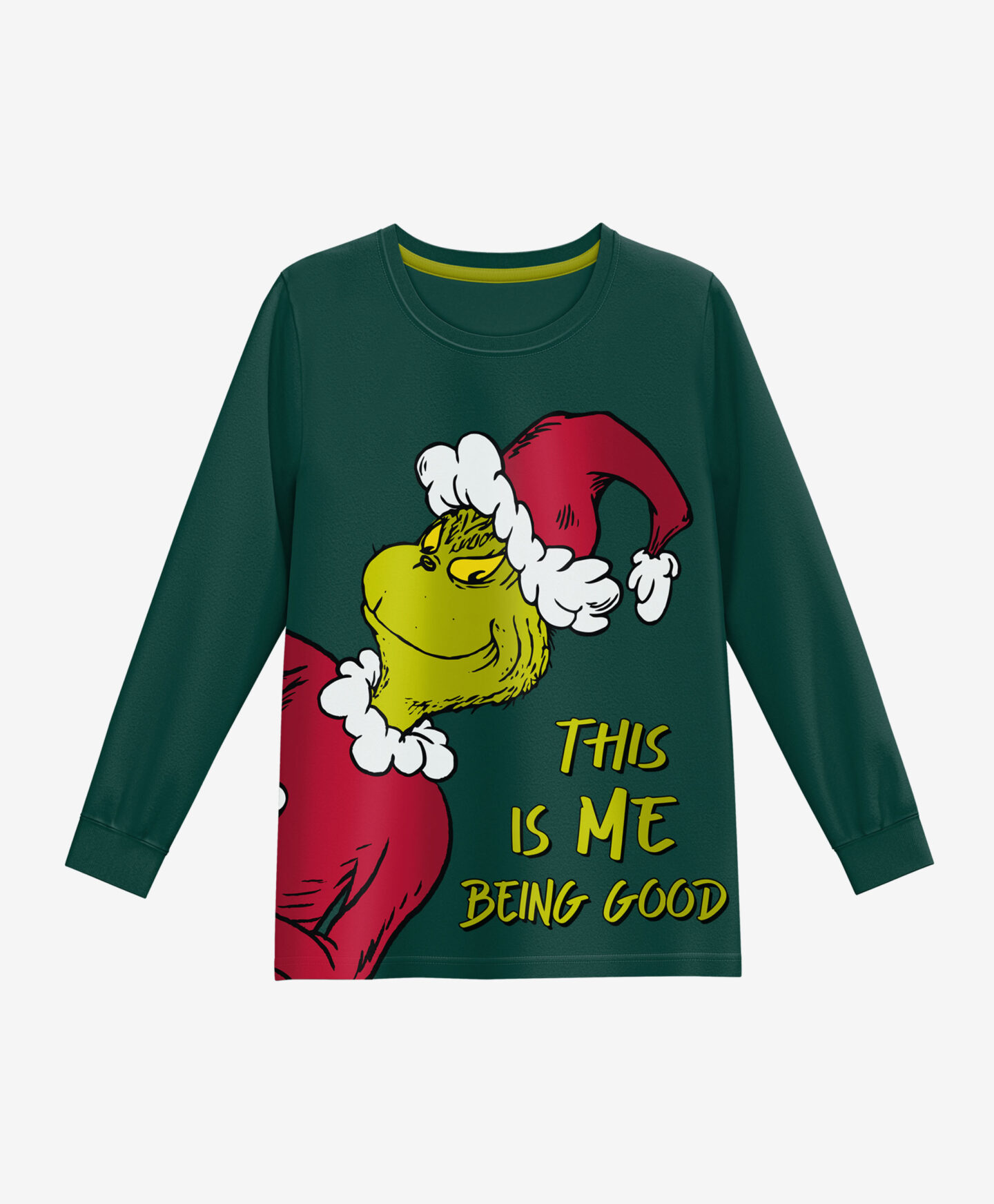 O pijama do Grinch, em 100% algodão, é perfeito para as noites de Natal. O conjunto inclui uma camisola e umas calças com padrão de Natal, proporcionando conforto e aconchego. O Grinch traz um toque alegre e divertido. O material natural é macio e resistente.