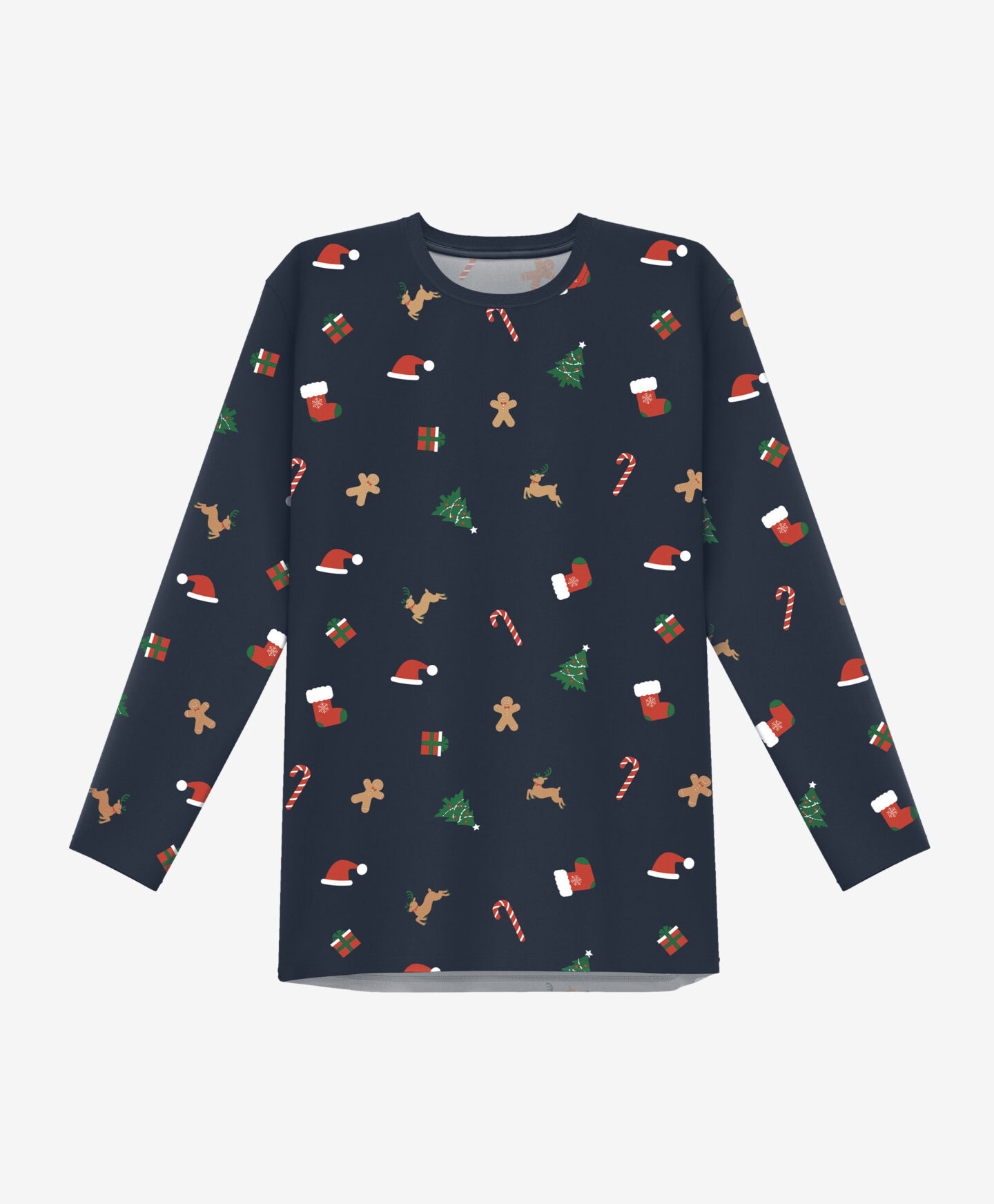 O pijama com padrão de Natal, em algodão suave e respirável, é ideal para as noites de inverno. O design encantador adiciona um toque mágico aos dias acolhedores passados em casa. Uma ótima ideia para oferecer como presente.