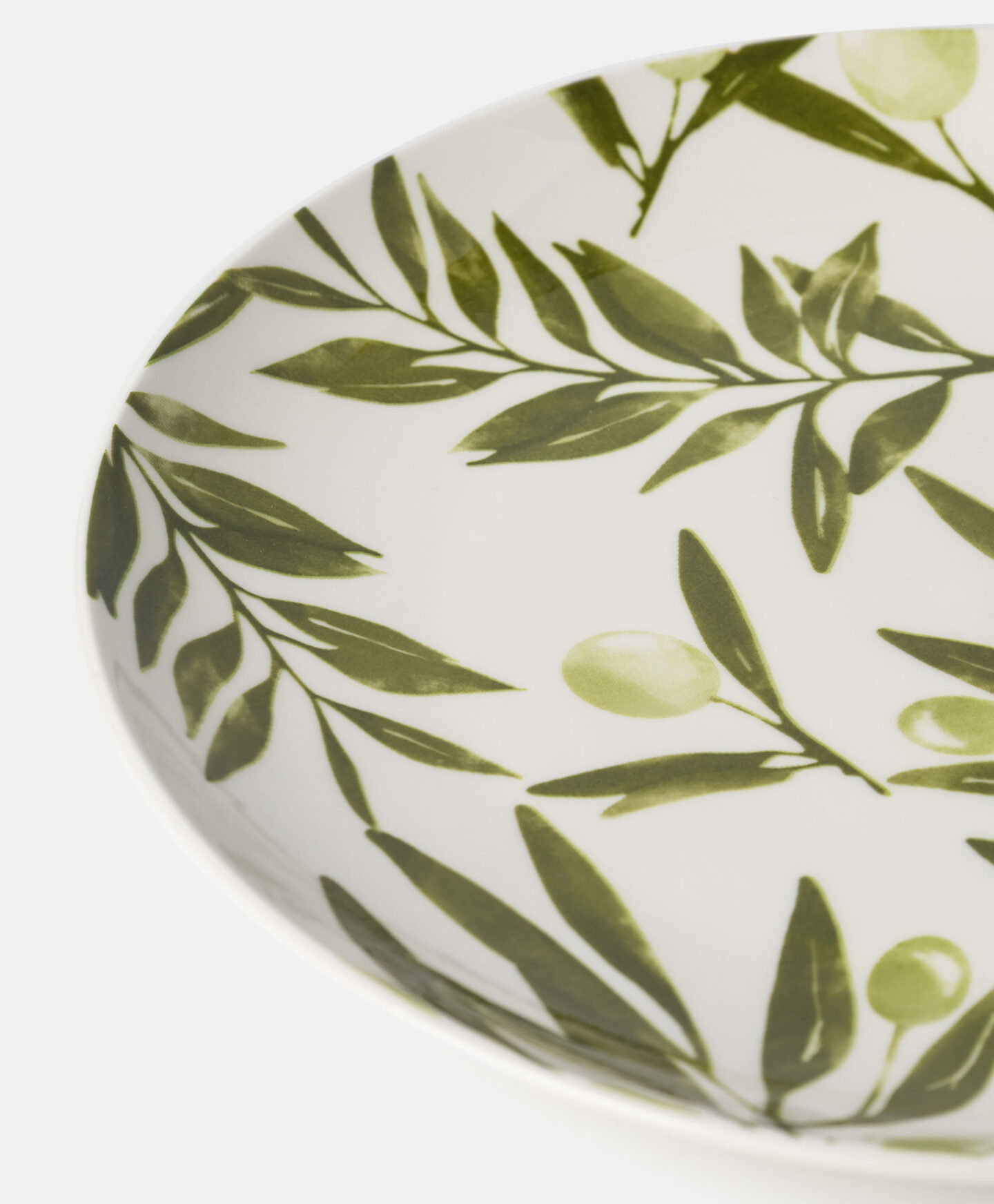 O prato de sobremesa em porcelana, com padrão de ramos de oliveira, será a escolha perfeita para uma mesa de primavera. O padrão subtil, inspirado na paisagem mediterrânica, dá-lhe um carácter único, tornando-o funcional e decorativo. A porcelana New Bone China é resistente, durável e fácil de limpar. Ideal para servir sobremesas, bolos, fruta e outras delícias.