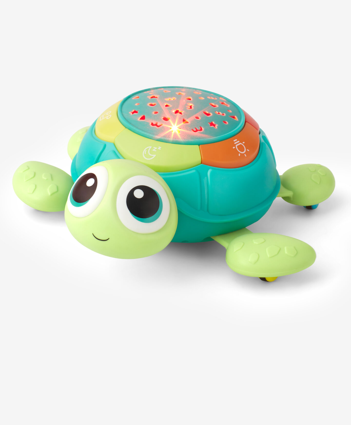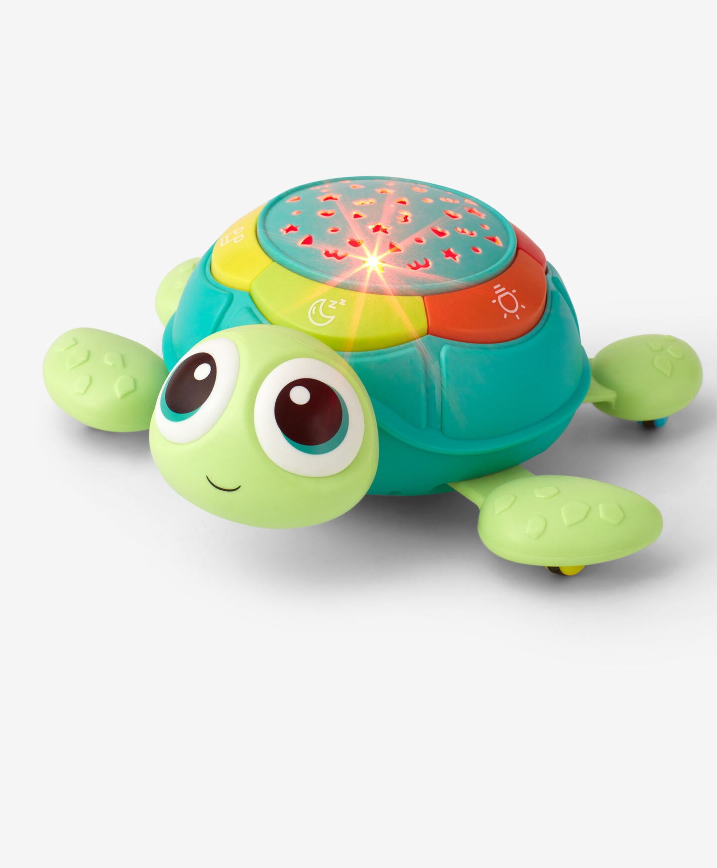 O projetor em forma de tartaruga vai surpreender com efeitos de luz. Durante a hora de brincar, a tartaruga anda enquanto projeta padrões luminosos que atraem a atenção das crianças. Estimula a visão e incentiva a atividade física. Pilhas incluídas.