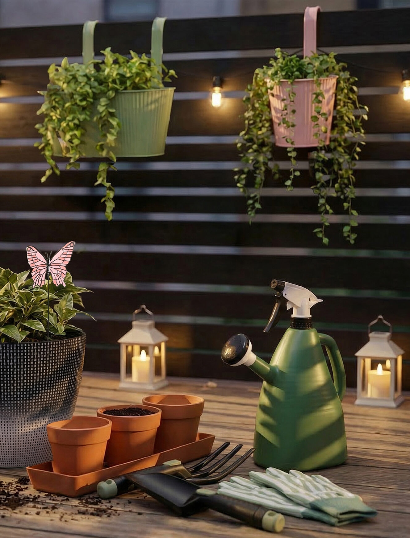 O regador 2 em 1 é um acessório útil para todos os amantes de jardinagem. A pega confortável e a capacidade de 1250 ml permite regar as flores livremente, enquanto o pulverizador permite ainda borrifá-las com uma névoa de água. A solução 2 em 1 não só poupa espaço, como também facilita o cuidado das plantas de interior e de varanda.