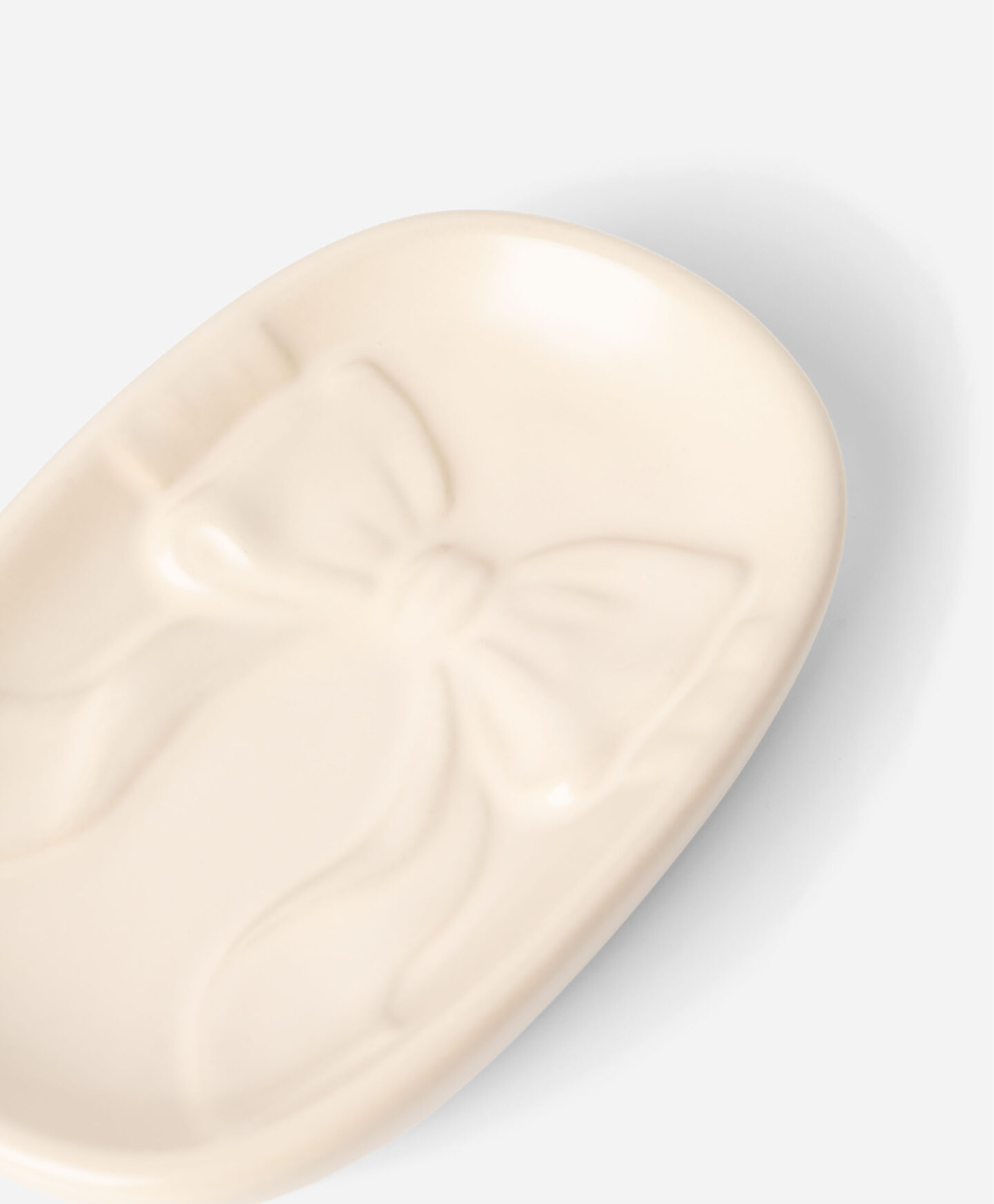 A saboneteira em cerâmica é perfeita para fãs de acessórios classy. O laço em relevo combina com outros acessórios de casa de banho da coleção. O formato prático ajuda a drenar a água eficazmente, mantendo o sabonete limpo.