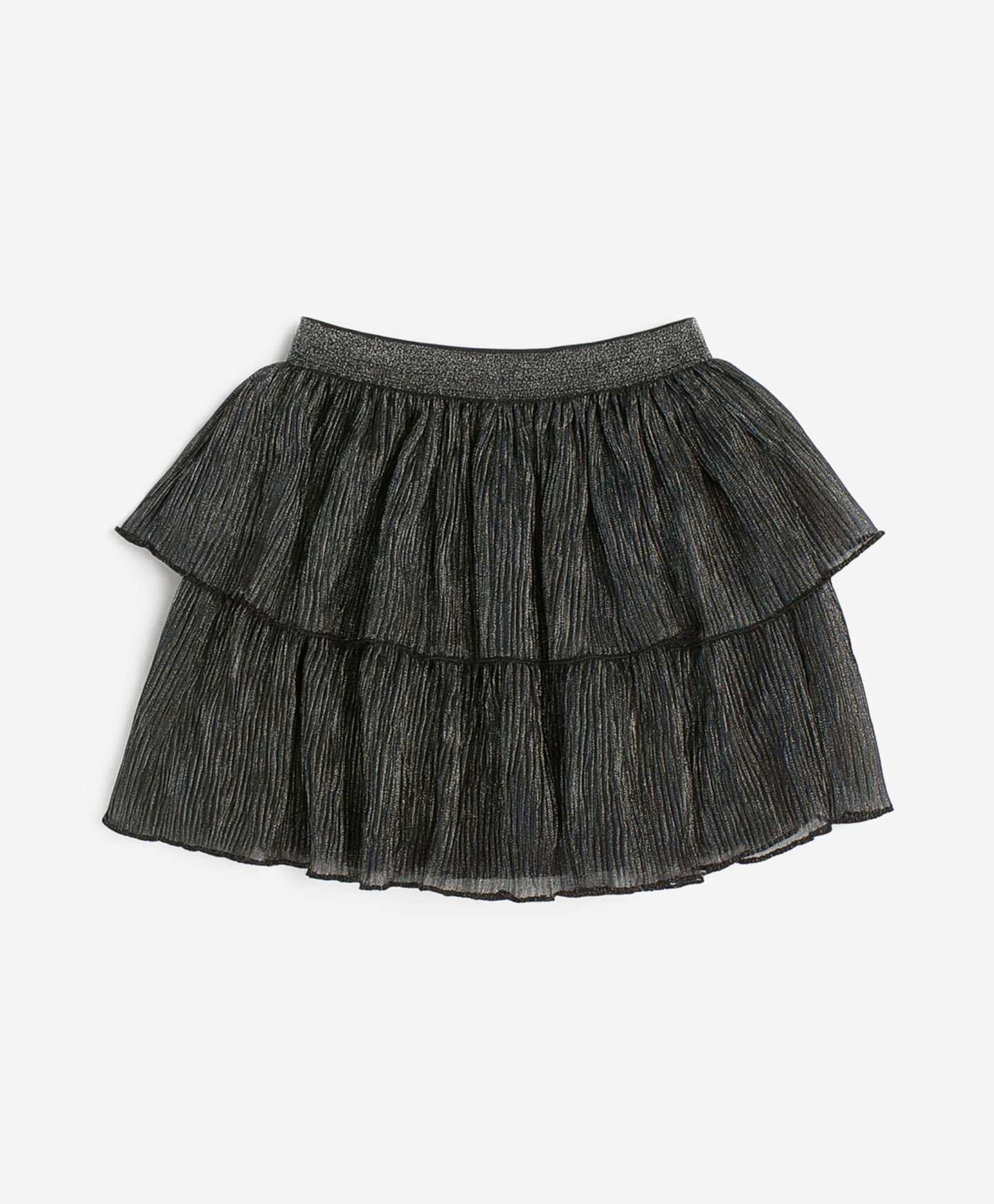 A saia com fio metálico é leve e trendy. Ideal para convívios em família ou dias de escola especiais. A cintura elástica garante um ajuste perfeito.