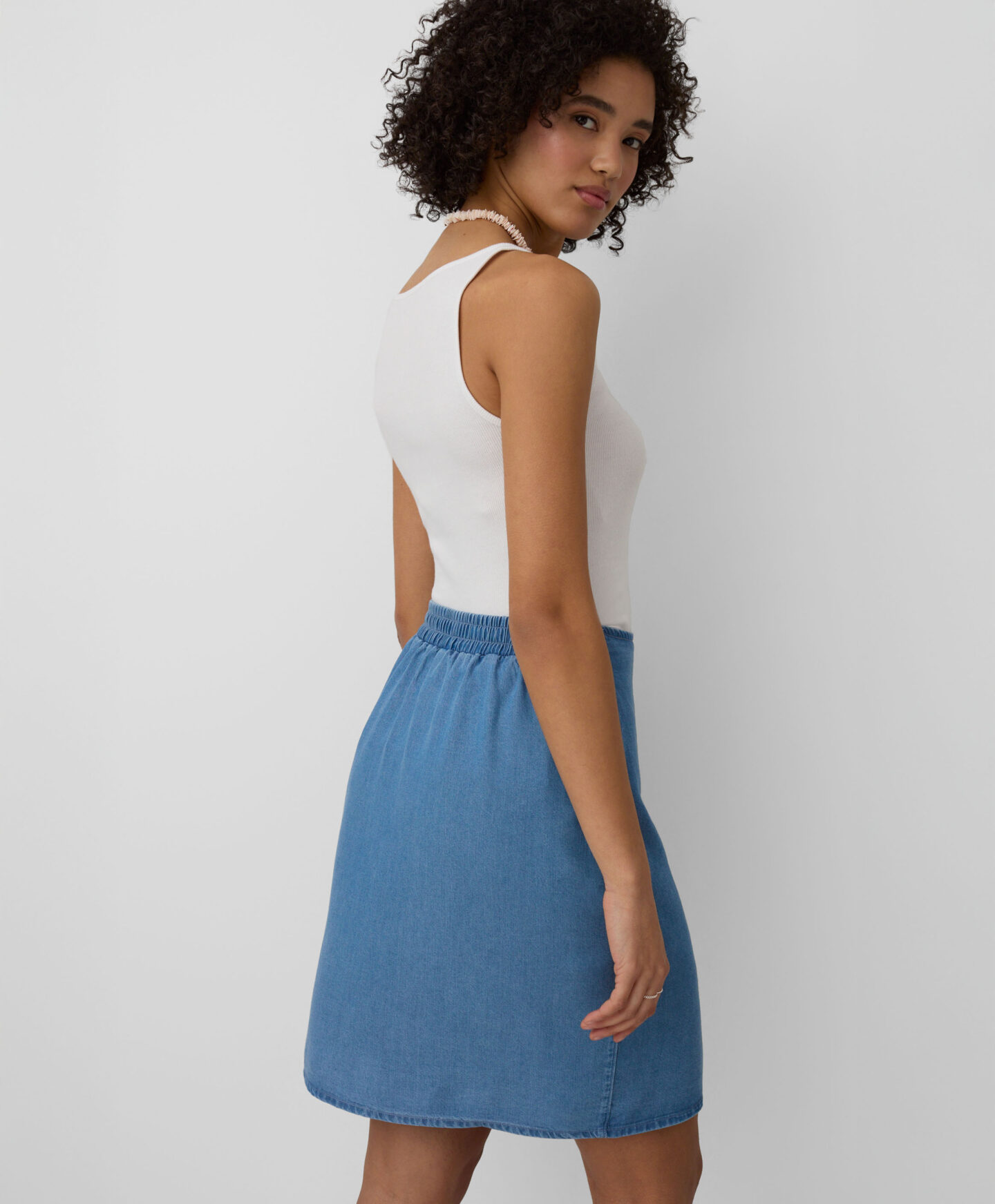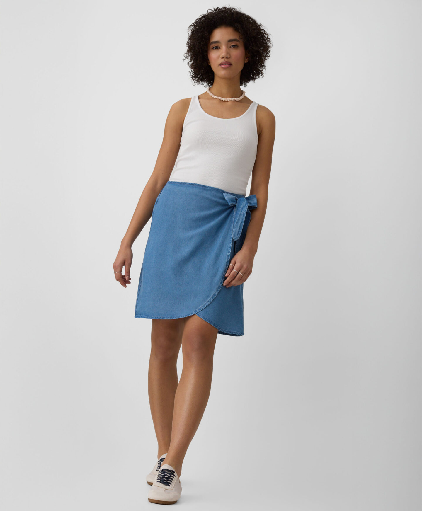 A saia com calções em 100% lyocell combina elegância com praticidade. O tecido é durável e resistente a rugas, além de confortável e respirável. É a peça perfeita para dias quentes, oferecendo liberdade de movimento e bem-estar.