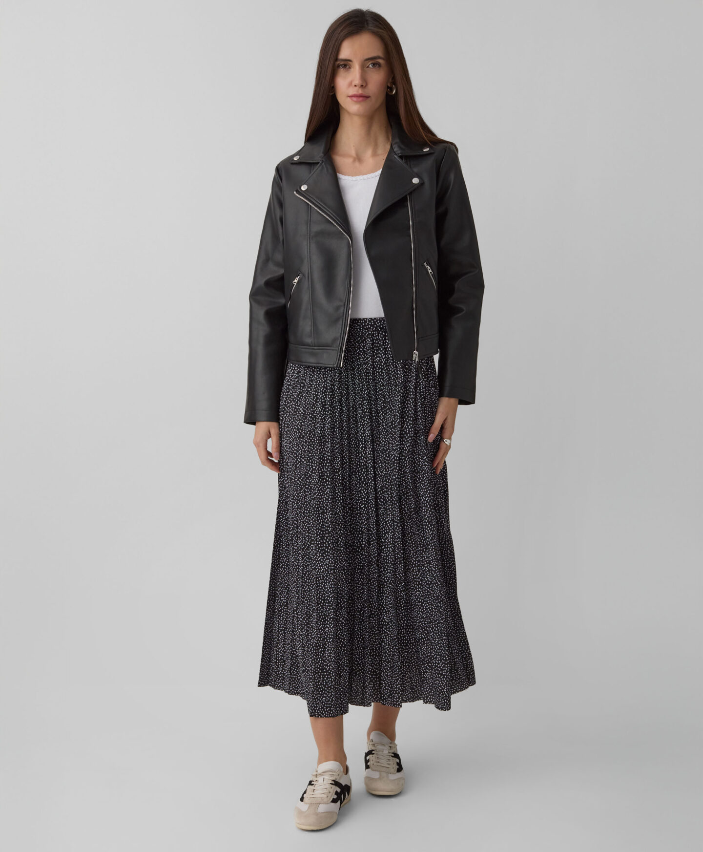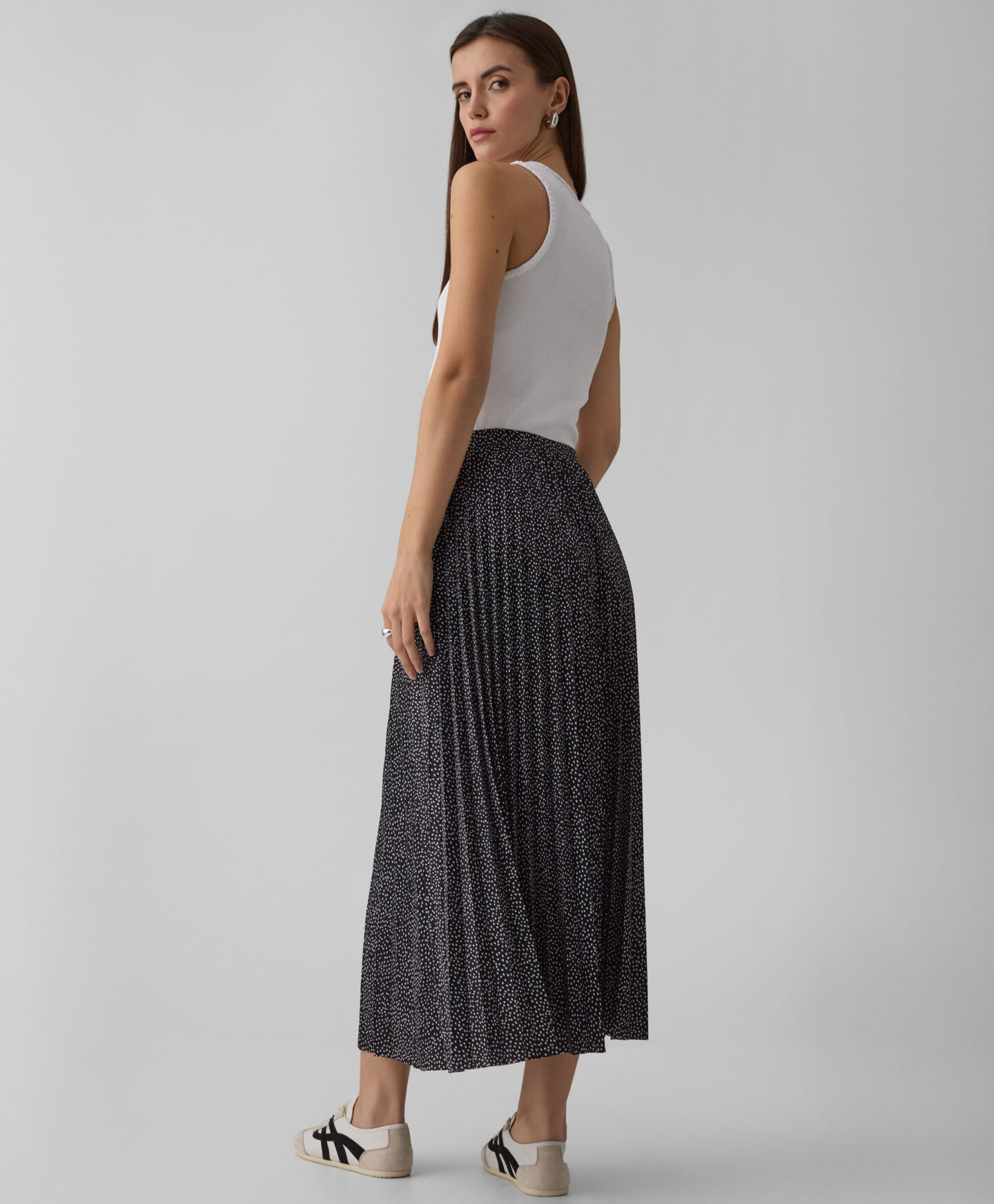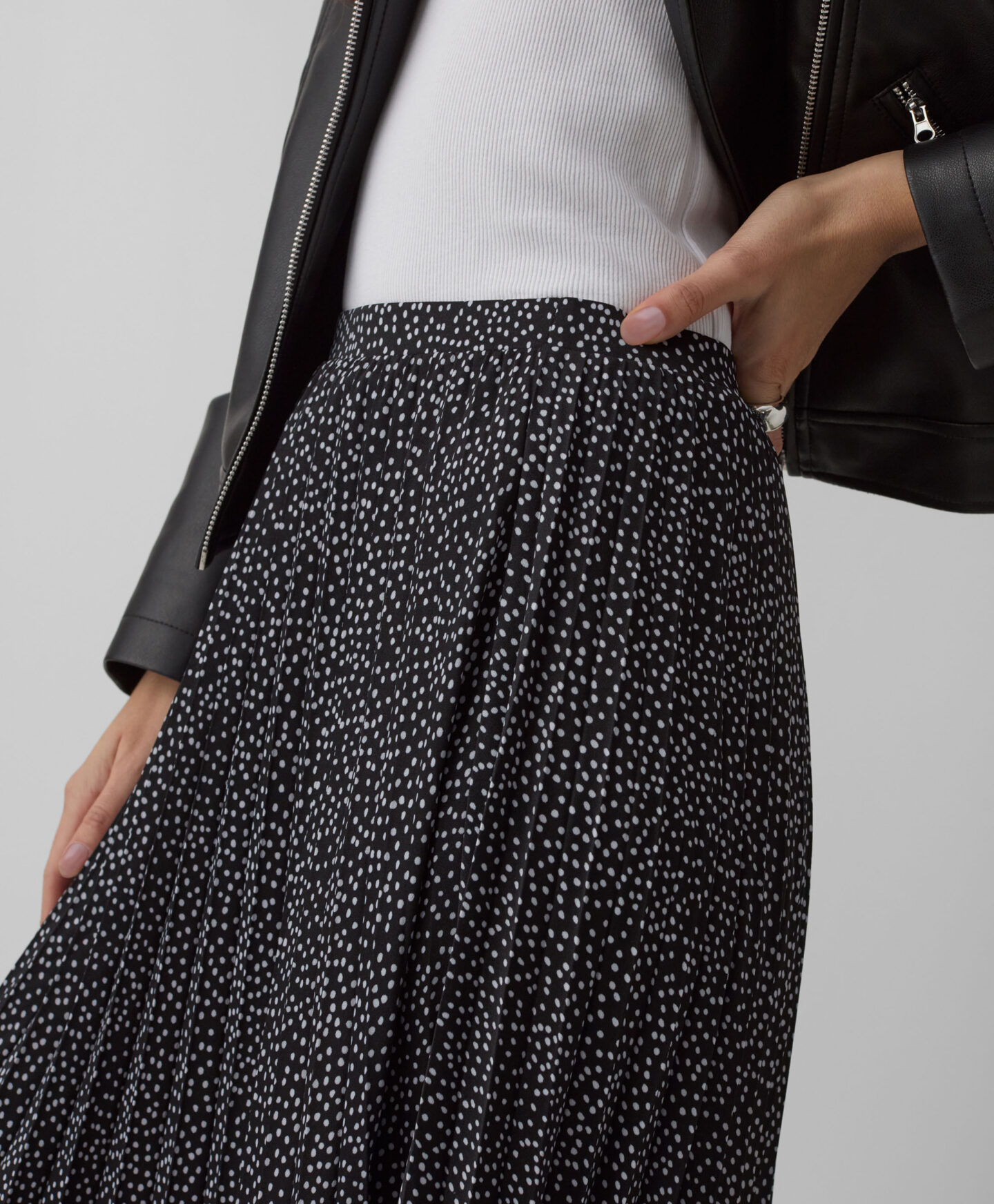 A saia plissada é uma proposta fluída para os românticos. O seu comprimento largo permite que a combines da melhor forma quer seja para o trabalho ou ocasiões especiais. Fica linda em conjunto com uma blusa simples, uma camisa elegante ou um casaco. As suas pregas garantem liberdade total de movimentos.