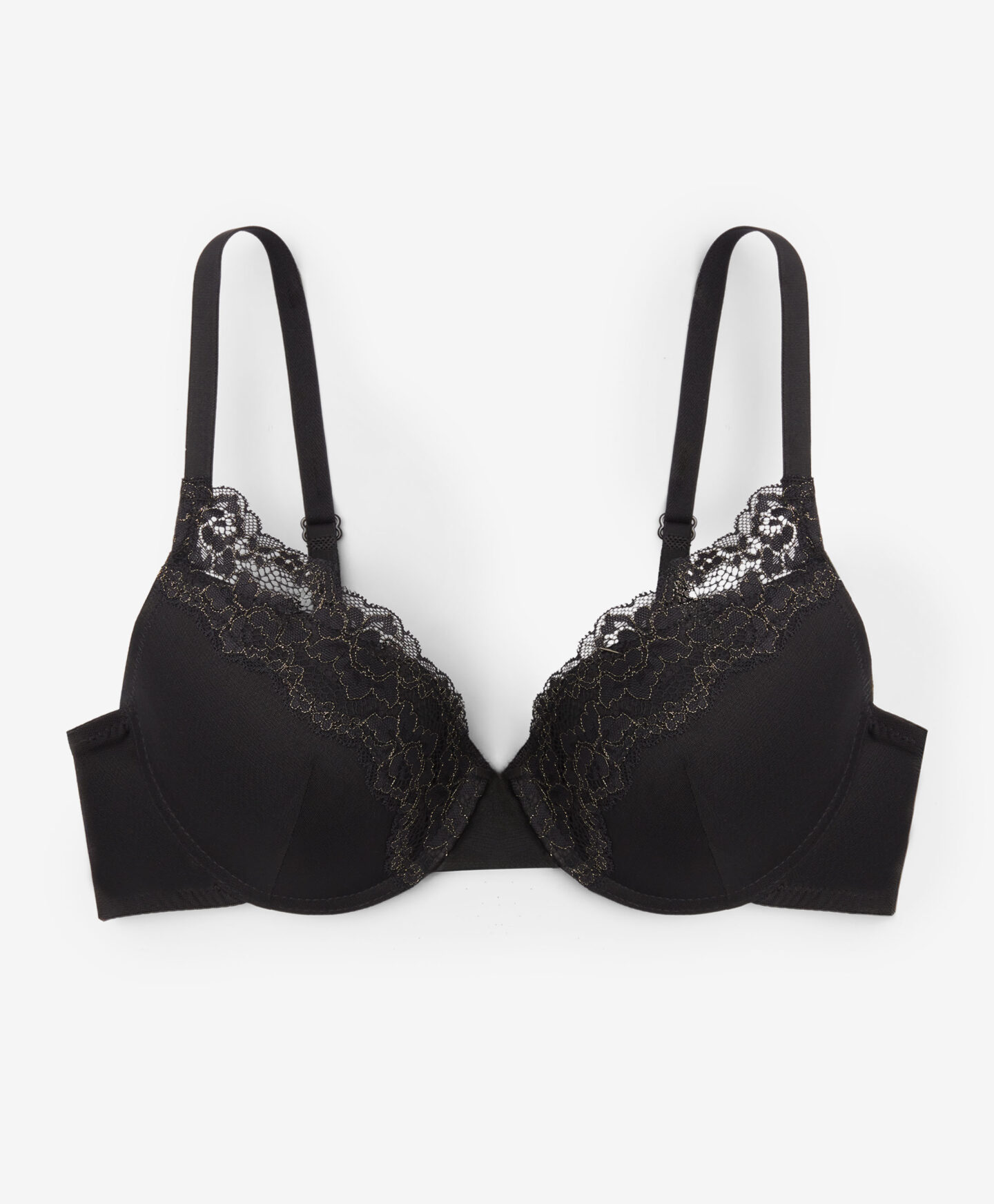 O soutien push-up em renda, com lurex, é a escolha perfeita para dar realce à silhueta. O acabamento em renda combinado com o lurex brilhante cria um efeito muito sexy. É uma ótima escolha para looks com decotes mais acentuados, aumentando a confiança e garantindo conforto. Cria a lingerie perfeita com umas cuecas da coleção!