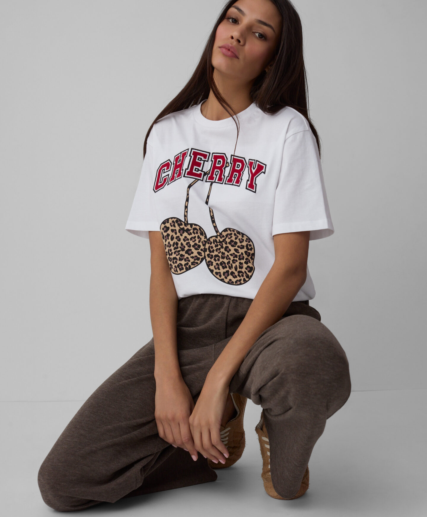 A t-shirt em 100% algodão, com padrão de leopardo, acrescenta carácter a qualquer look. O material natural é suave para a pele e oferece conforto durante todo o dia. Podes combiná-la com calças casuais ou com acessórios elegantes para um look mais sofisticado.