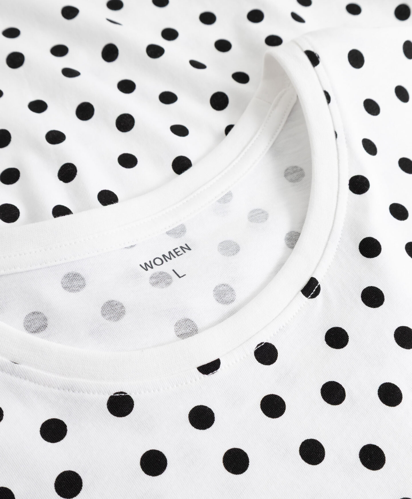 A t-shirt 100% algodão com bolinhas é perfeita para todas as ocasiões. É leve e respirável. As mangas curtas tornam-na perfeita para usar em looks de camadas, ou sozinha nos dias mais quentes. Combina também com todas as tuas calças. O padrão intemporal com bolinhas vai ser a peça que faltava no teu armário.