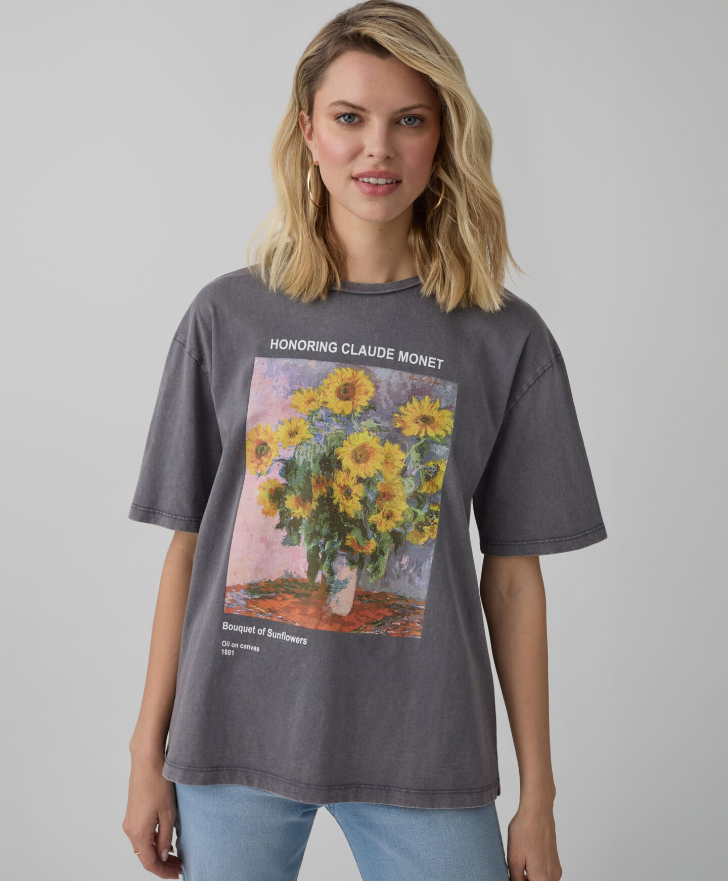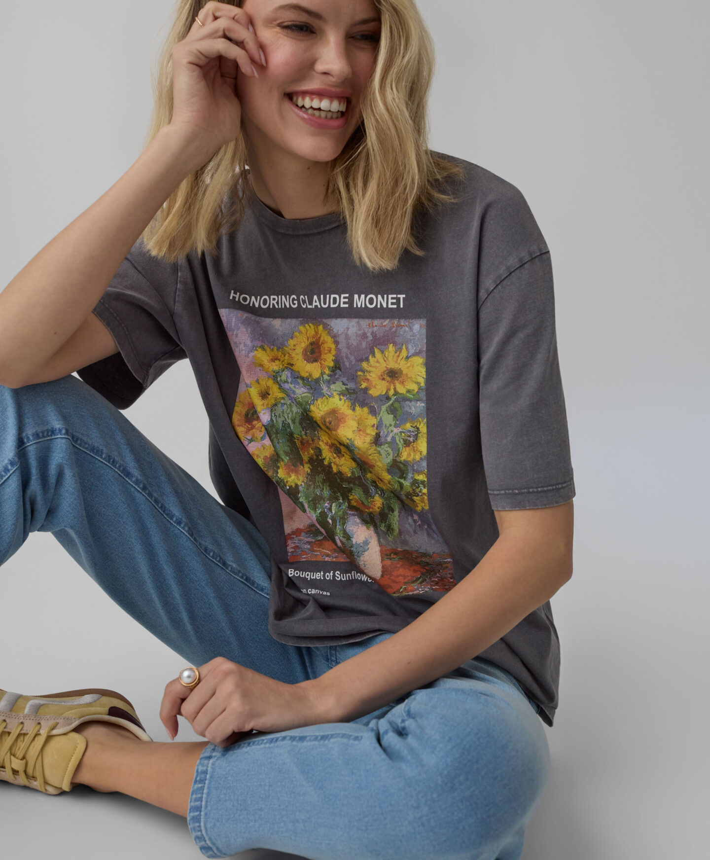 A t-shirt 100% algodão com estampado de girassol vai ser a pérola do teu armário. É leve, suave e muito respirável. Combina tanto com umas calças de ganga como uma saia. Perfeita para looks em camadas ou sozinha nos dias mais quentes. O seu corte clássico e materiais suaves ao toque vão torná-la a tua opção favorita.
