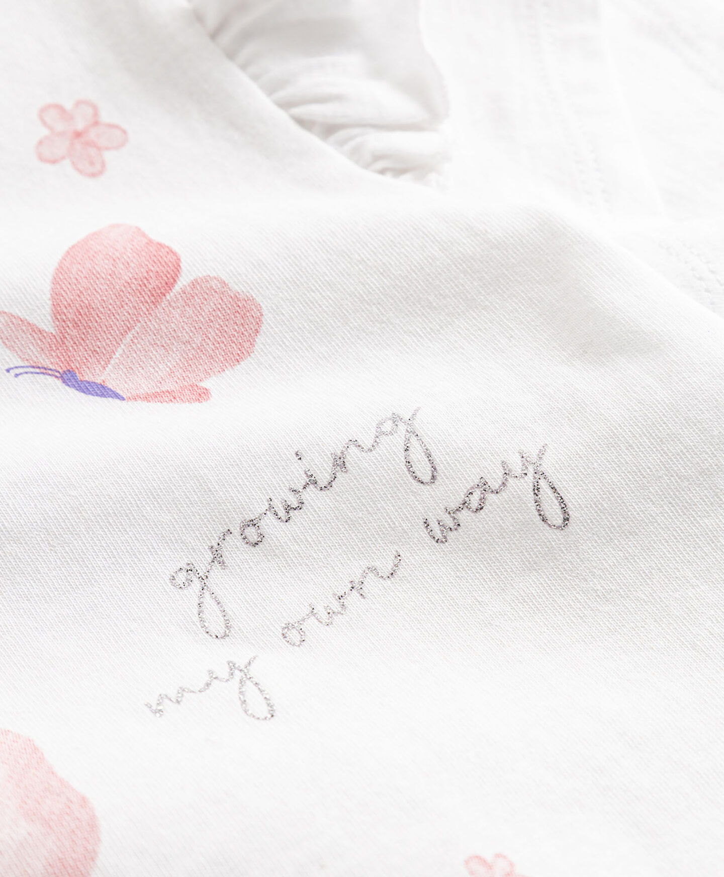A t-shirt em 100% algodão é perfeita para fãs de borboletas. O material natural garante conforto e elevada respirabilidade. As mangas curtas são ideais para dias quentes. O folho encantador acrescenta um toque fluido e diferente. Perfeita para combinar com saia ou calças.
