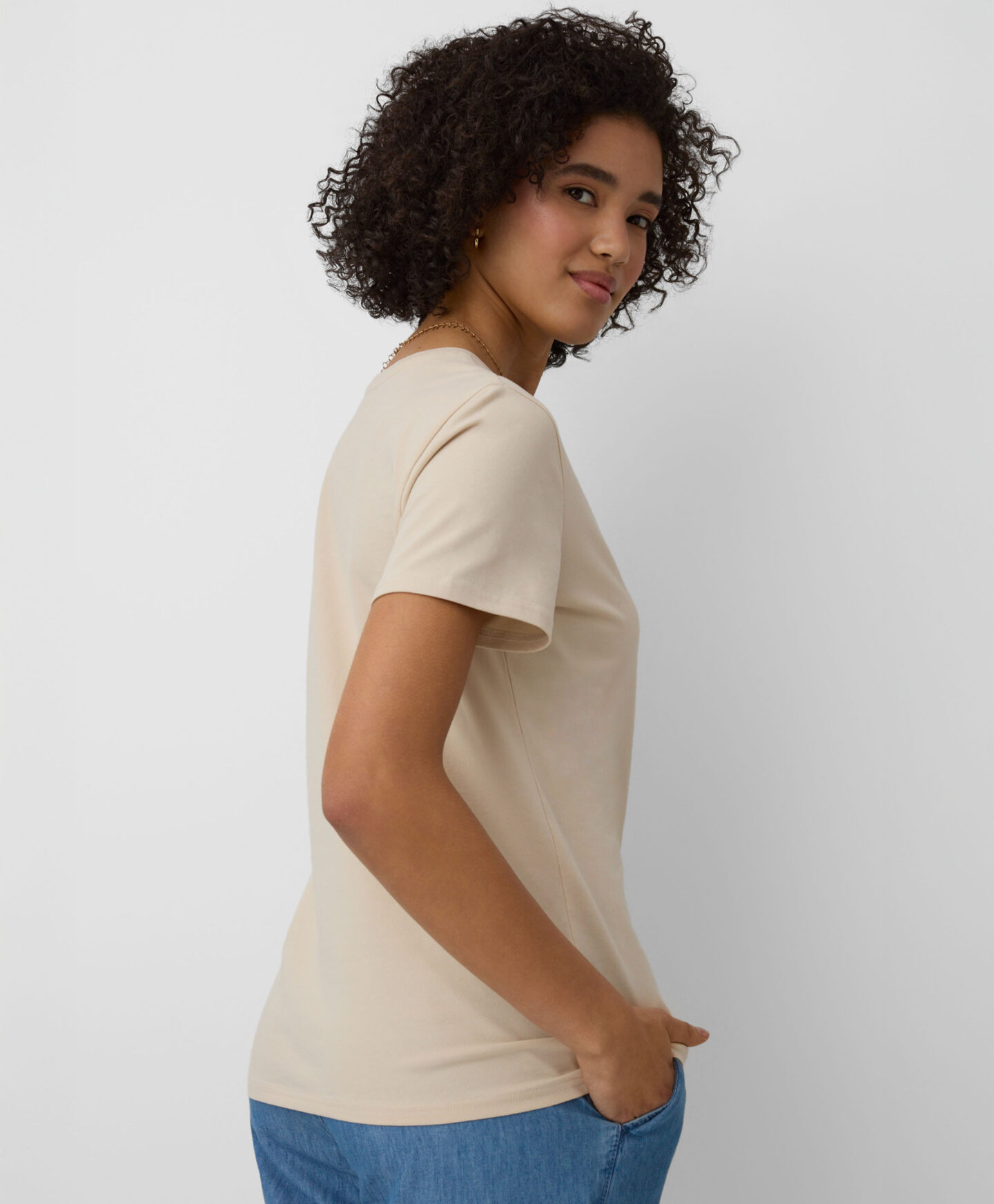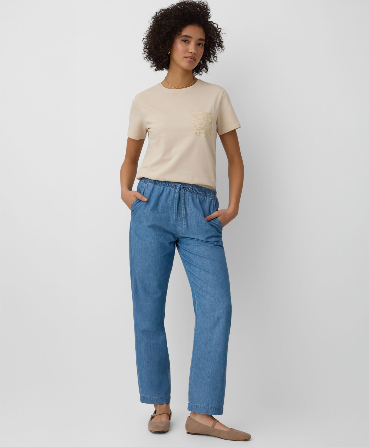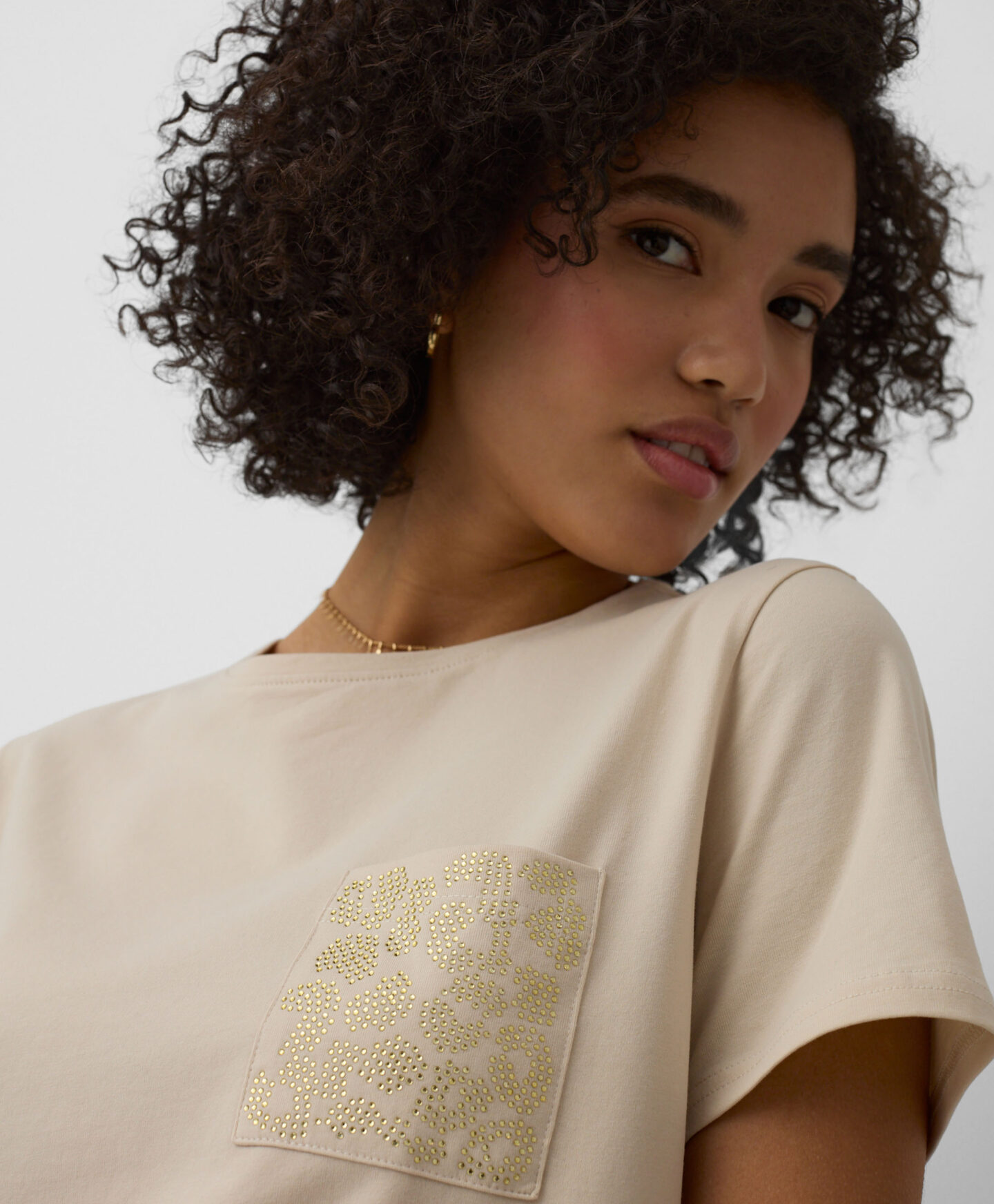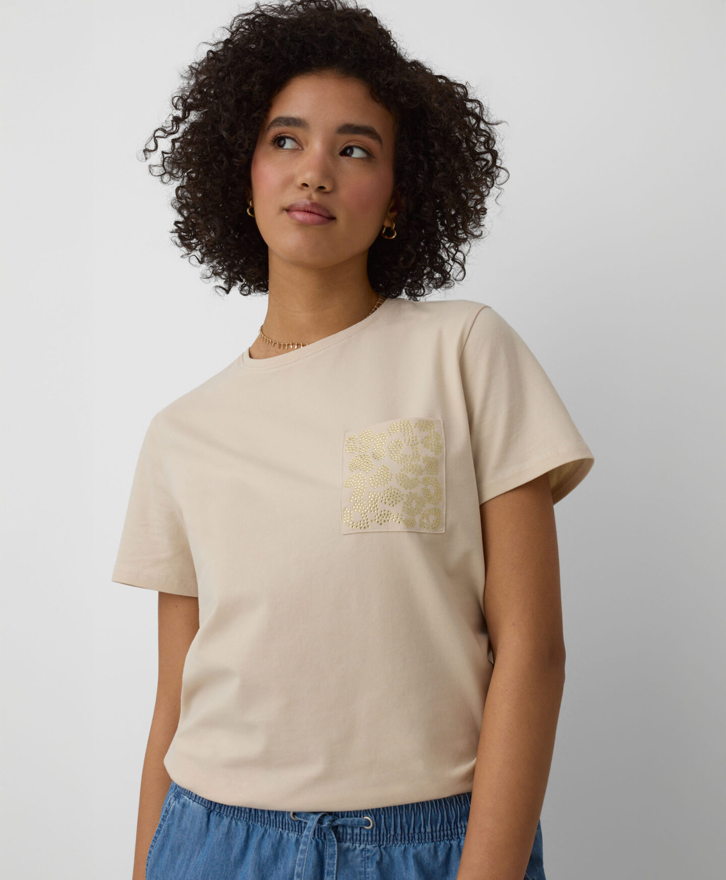 A t-shirt em 100% algodão com bolso decorativo é perfeita para o dia a dia. O corte clássico e a cor suave fazem dela a base ideal para vários looks. Confortável, fresca e permite que a pele respire. Combina com calças de ganga, de fato de treino ou elegantes estilo cigarette.