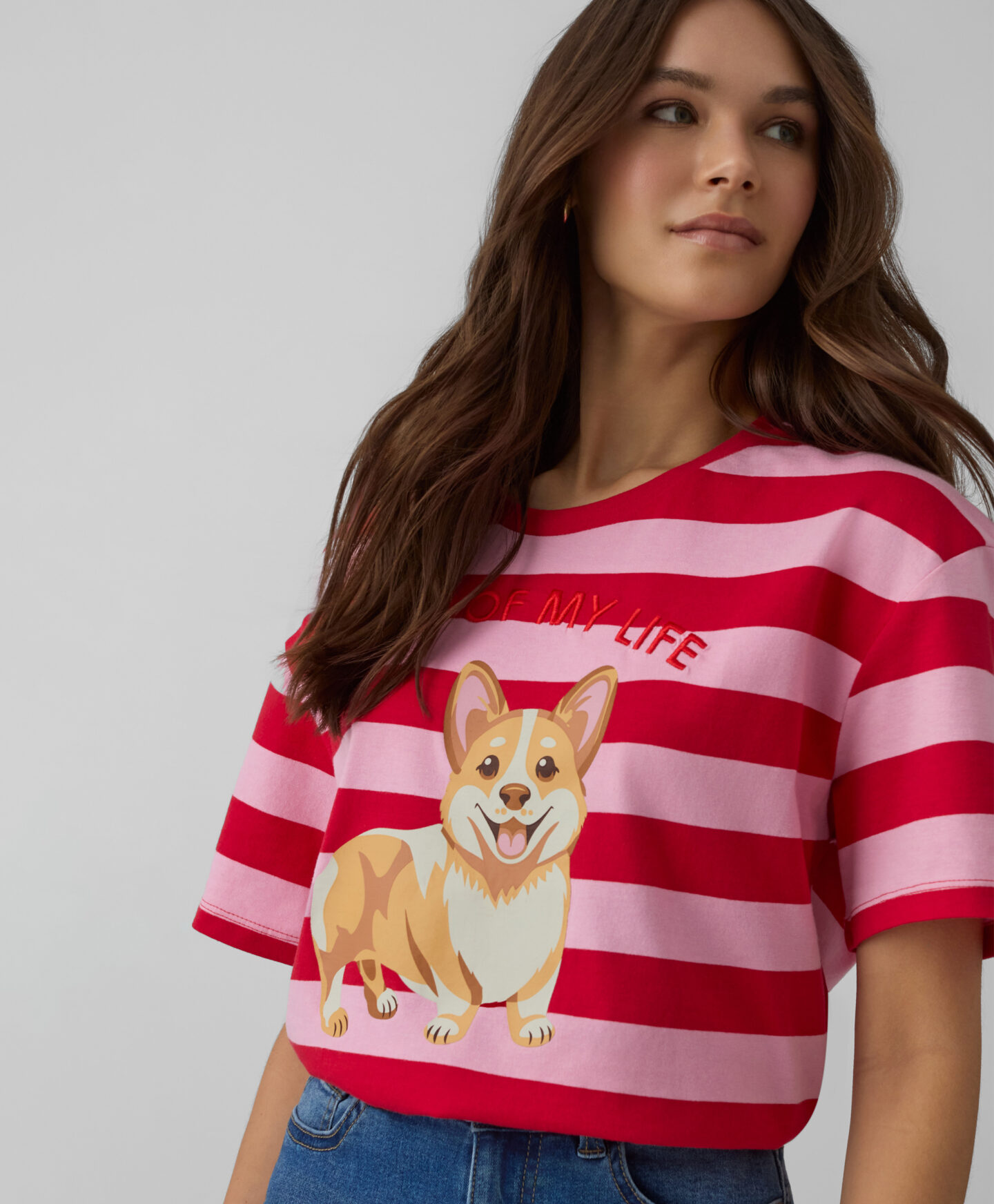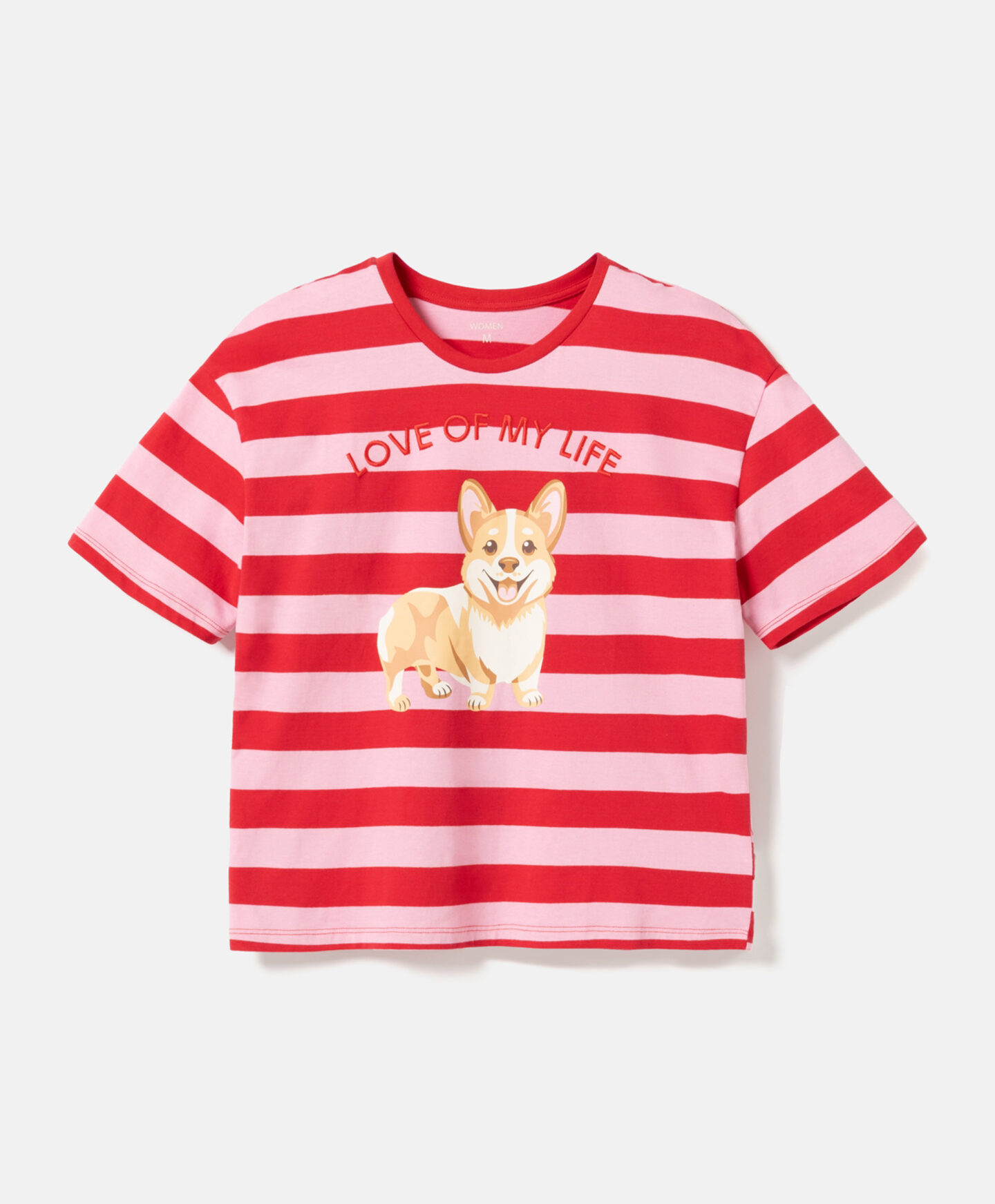 A t-shirt às riscas, em 100% algodão, com um texto divertido, é ideal para todos os dias. É macia, respirável e confortável para a pele. Combina na perfeição com calças de ganga ou de fato de treino.