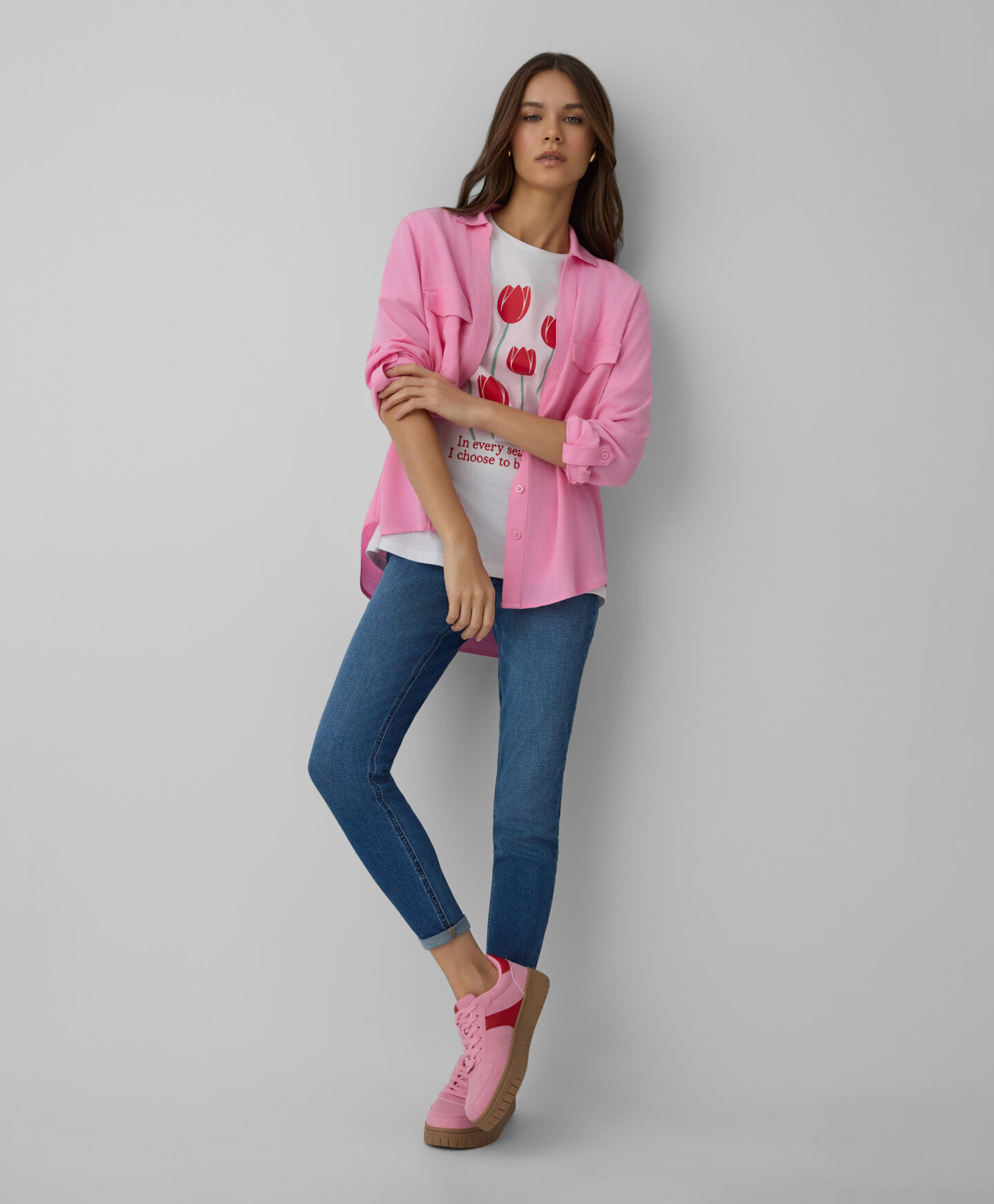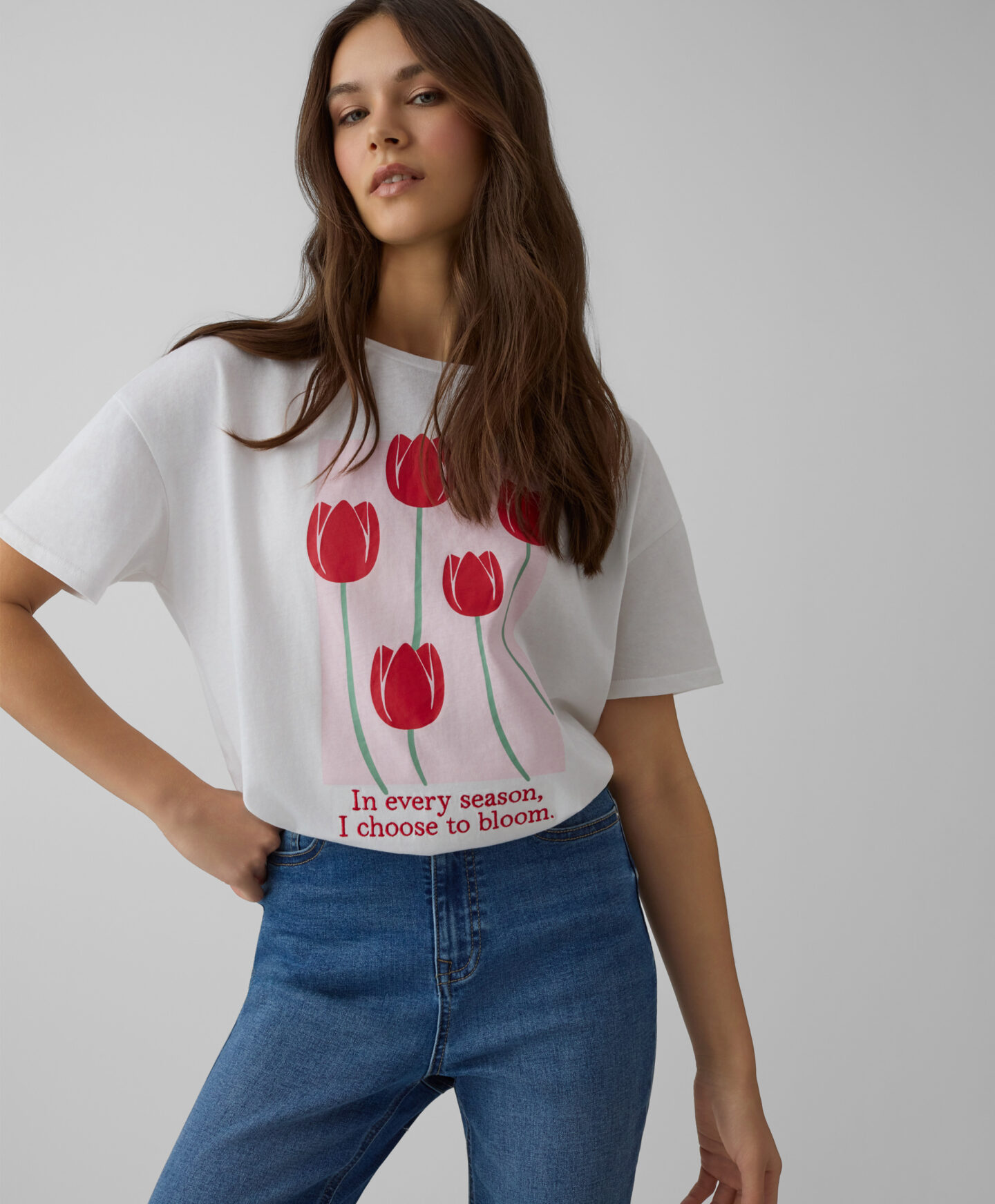 A t-shirt floral, em 100% algodão, é ideal para o dia a dia. Versátil, confortável e com tecido respirável. O estampado encantador acrescenta frescura a qualquer look.