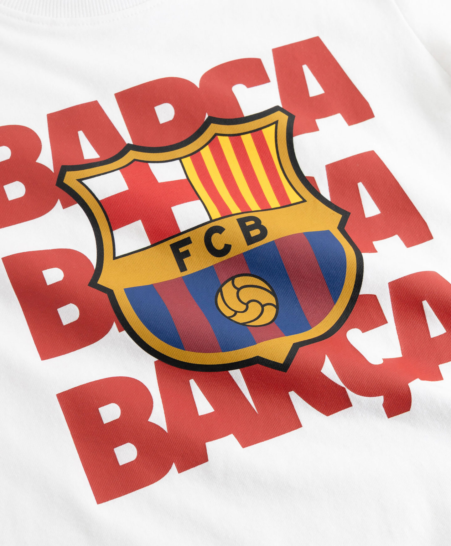 A t-shirt FC Barcelona, com elevado teor de algodão, garante conforto durante todo o dia. A cor versátil combina com muitas peças do guarda-roupa, e o logótipo da equipa preferida vai arrancar sorrisos.
