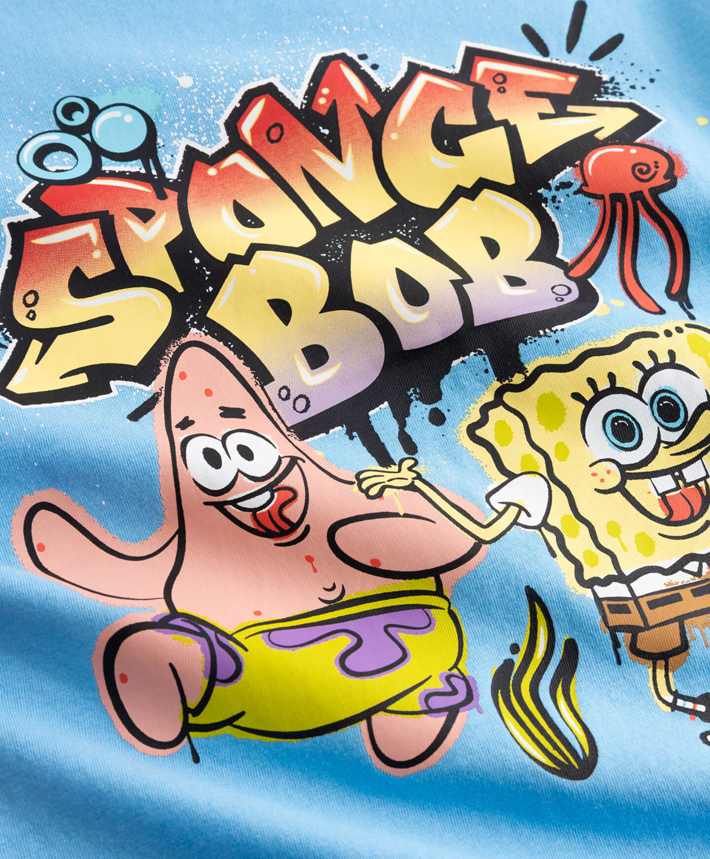A t-shirt SpongeBob em 100% algodão tem um estampado divertido com as personagens preferidas. Funciona bem em looks com camadas, com uma camisola, ou usada sozinha em dias mais quentes. O material respirável é agradável para a pele sensível da criança, garantindo conforto total. Combina com jeans ou calças de fato de treino.