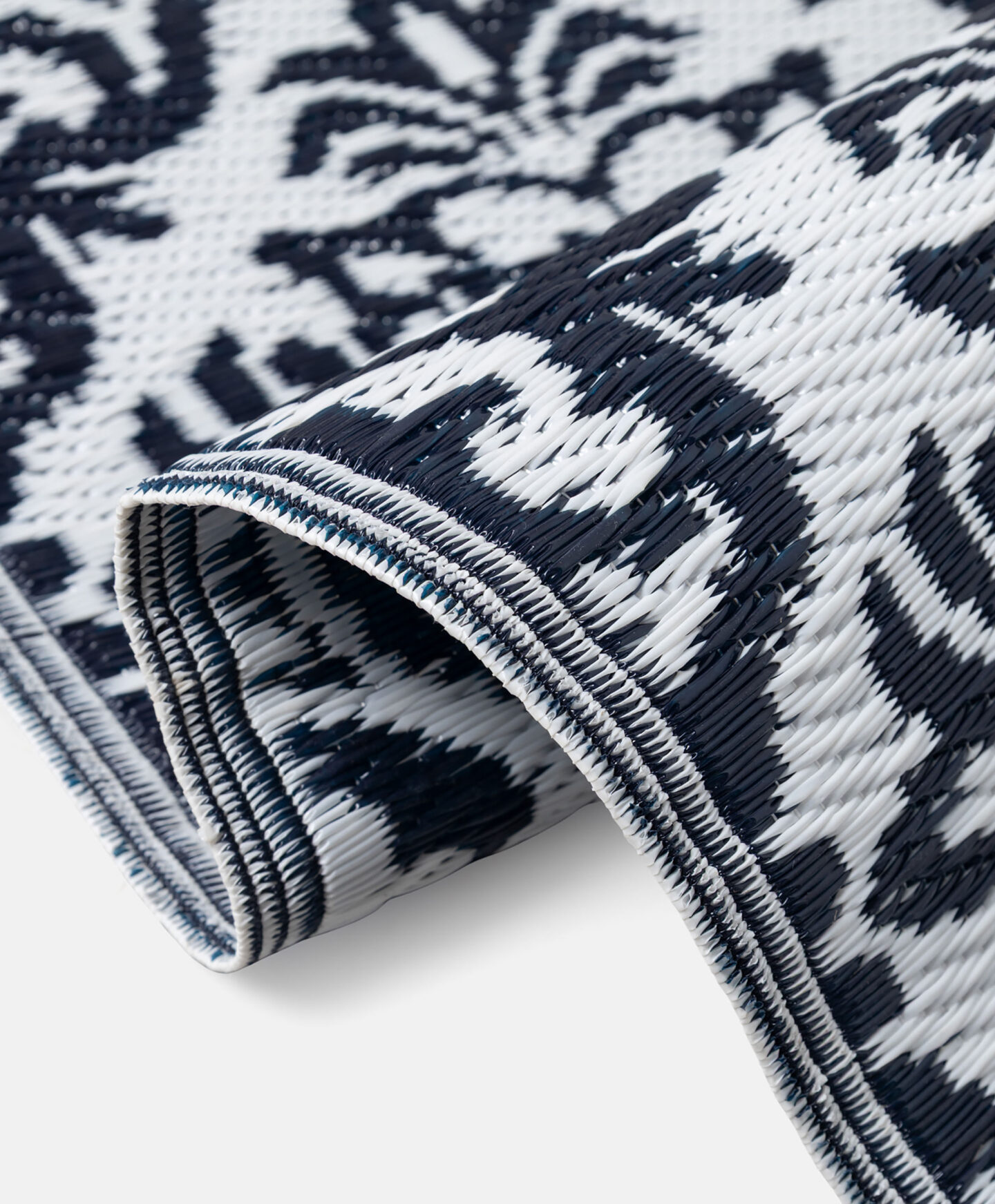 O tapete de exterior é ideal para decorar a tua varanda ou terraço. O padrão geométrico combina com madeira e azulejos. É durável, resistente ao tempo e aos raios UV, e fácil de limpar.