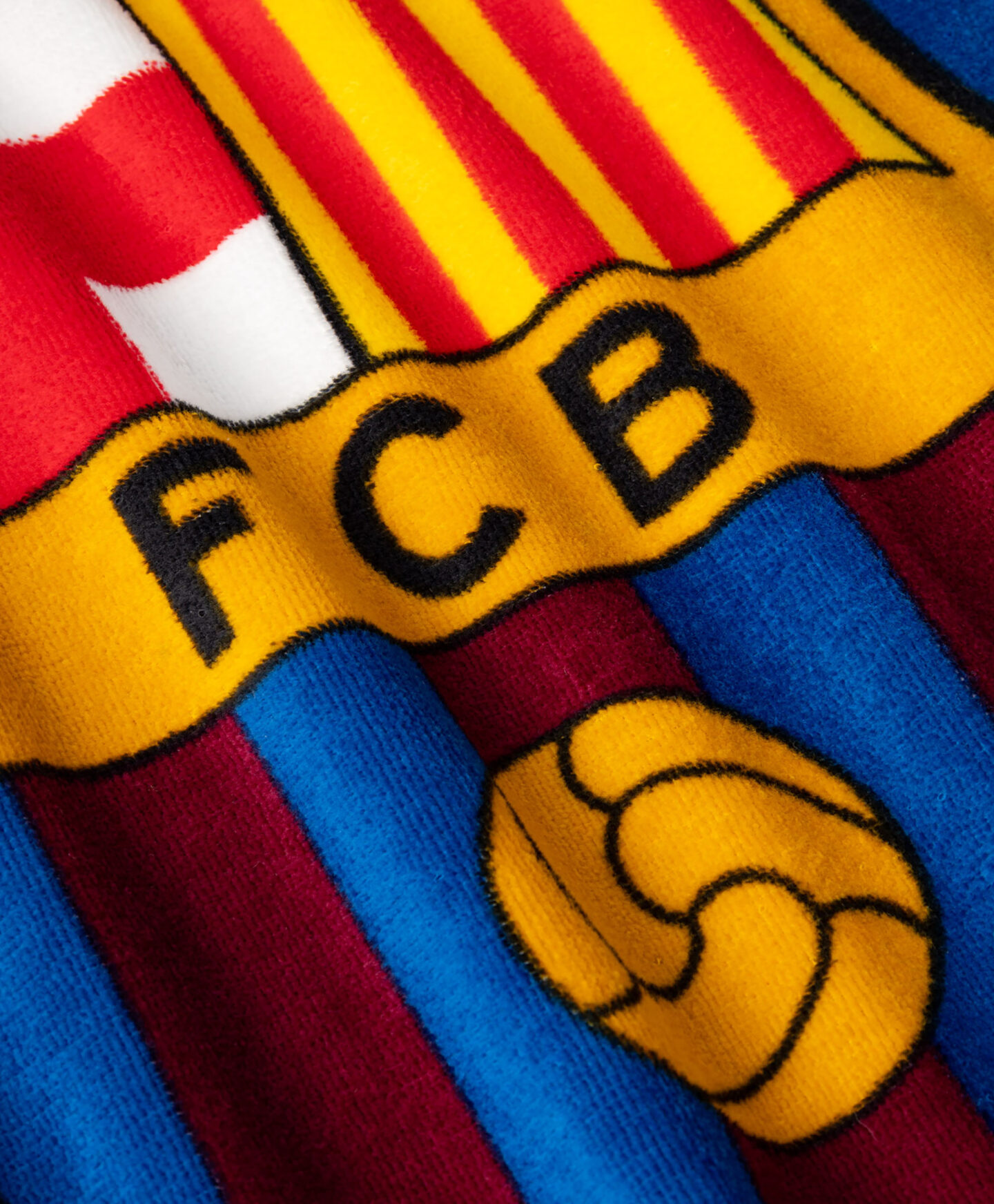 A toalha de praia do FC Barcelona, em 100% algodão, é um sucesso para os fãs de futebol. O tamanho torna-a perfeita para estender na areia ou numa espreguiçadeira. Também é uma ótima ideia para oferecer como presente.