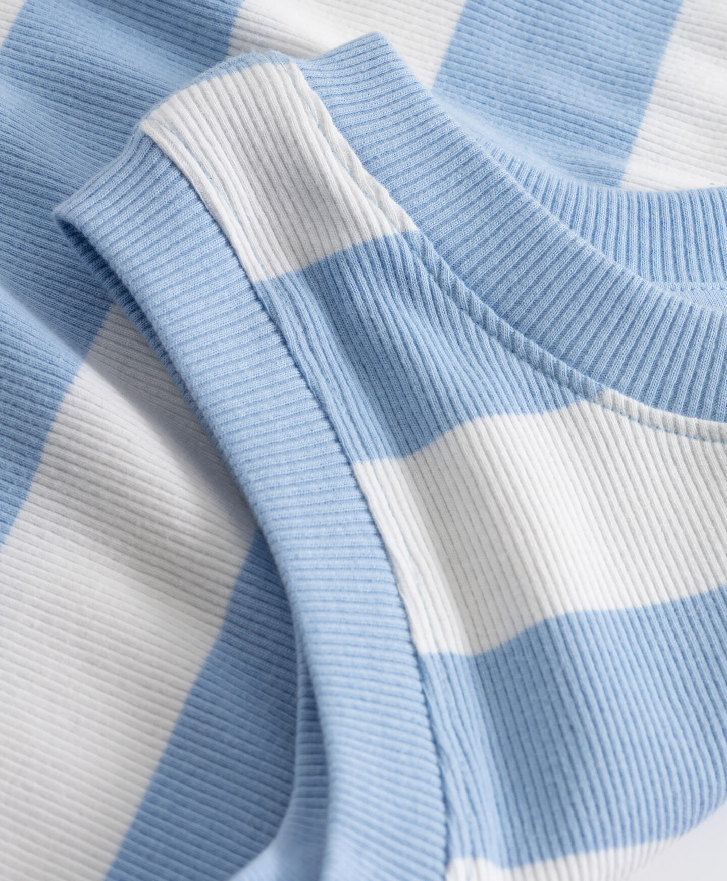 O top de alças é a essência do estilo à beira-mar. As alças largas e confortáveis não escorregam e garantem total liberdade de movimentos durante os dias mais ativos. O material com elevado teor de algodão permite que a pele respire mesmo nos dias mais quentes. Fica ótimo com calções de ganga, saias brancas ou acessórios vermelhos de estilo marítimo.