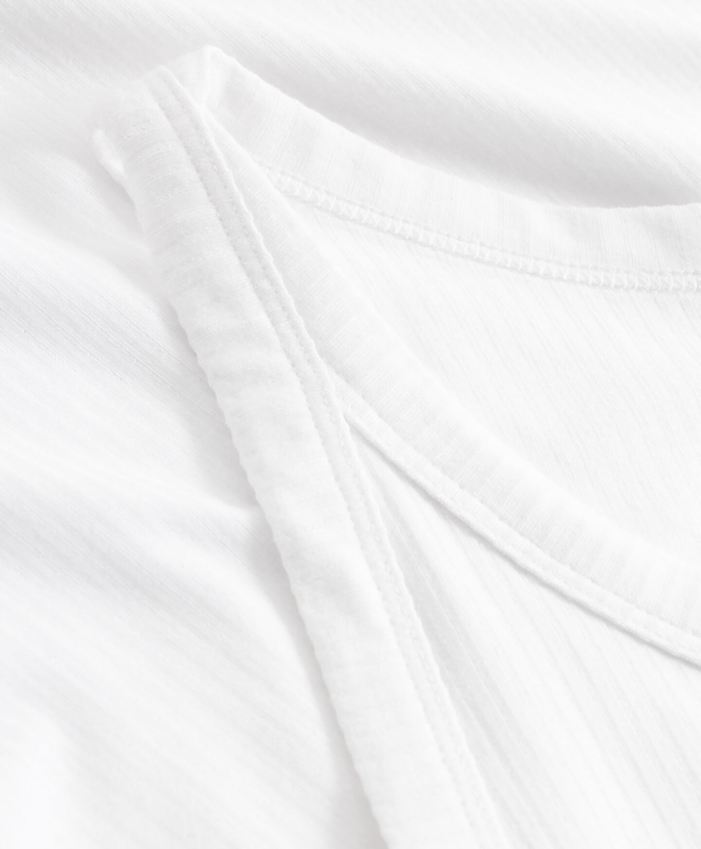 O top de alças alia o minimalismo ao conforto. Perfeito para os dias quentes, é produzido a partir de materiais ricos em viscose e acabamentos elásticos, que fornecem respirabilidade e assentam na perfeição. O corte clássico e cor branca vão destacar o bronze.