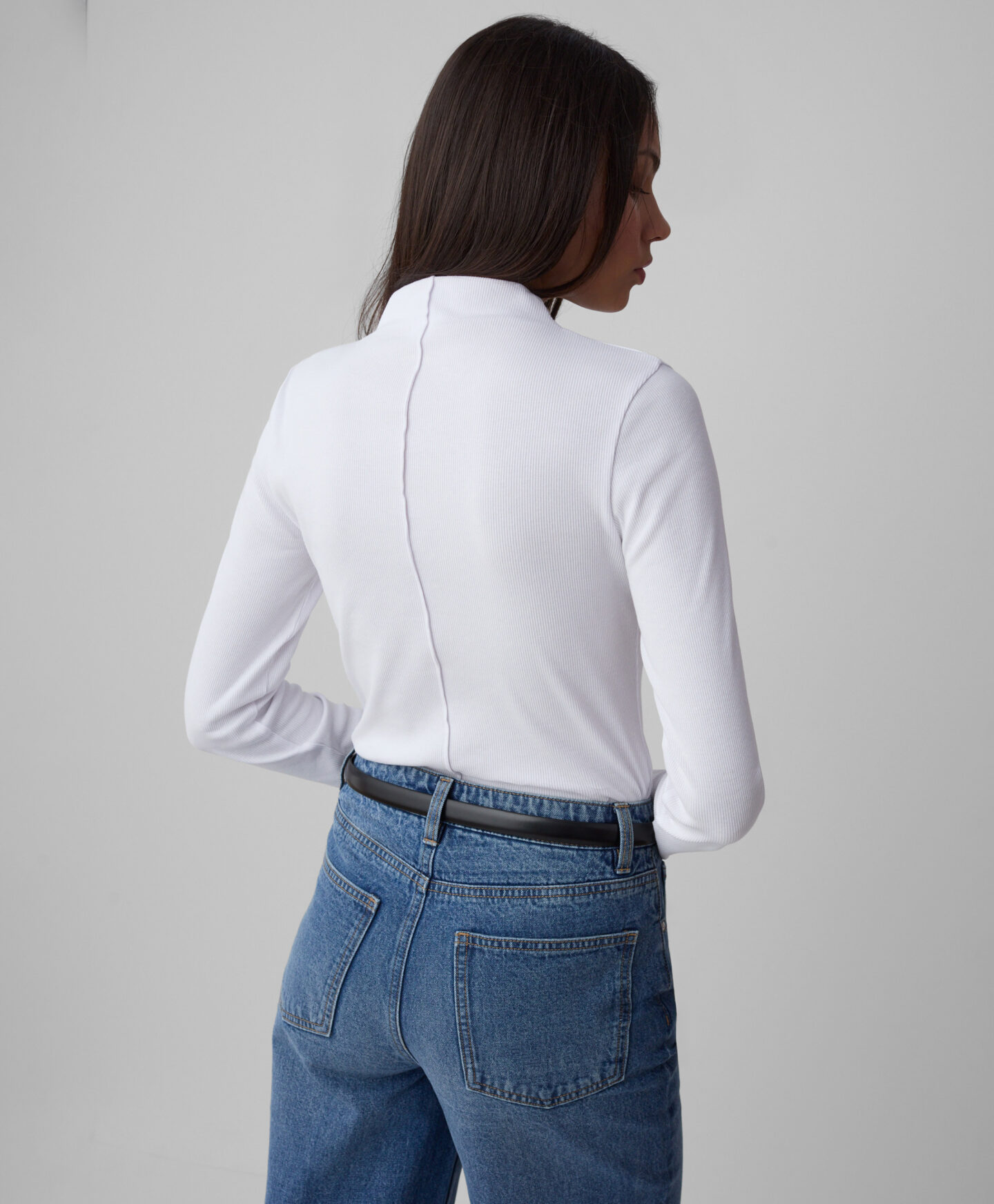 O top canelado é macio, respirável e agradável de usar. O elevado teor de algodão torna-o numa escolha ideal para o dia a dia. A costura decorativa na parte da frente realça o design único e marca a diferença. Disponível em duas cores.