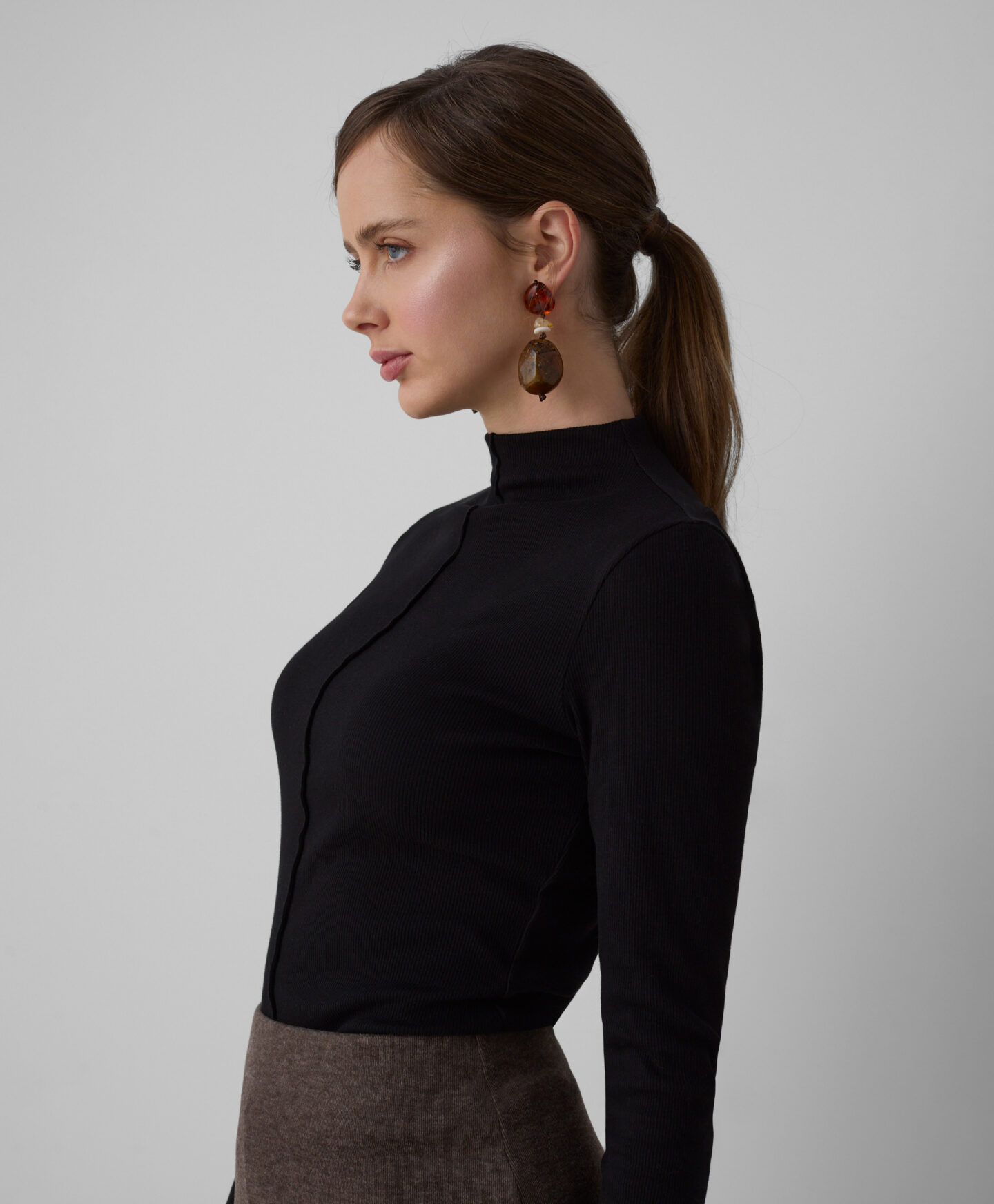O top canelado é macio, respirável e agradável de usar. O elevado teor de algodão torna-o numa escolha ideal para o dia a dia. A costura decorativa na parte da frente realça o design único e marca a diferença. Disponível em duas cores.