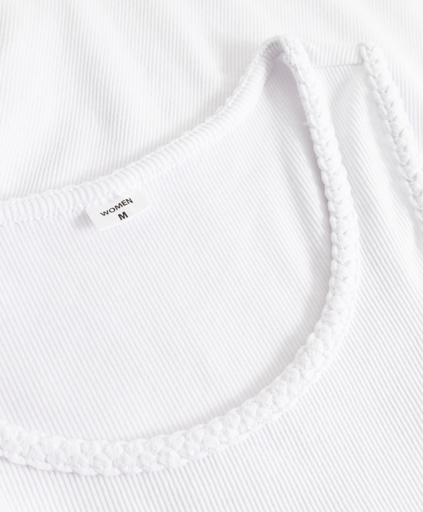 O top de alsas azul é a base de muitos conjuntos com estilo. O seu design universal, que nunca sai de moda, fica lindo com várias peças do teu guarda-roupa – desde calças a saias. Com um tecido suave e respirável que garante um conforto incomparável todo o dia, independente da estação. Disponível na coleção em duas cores.