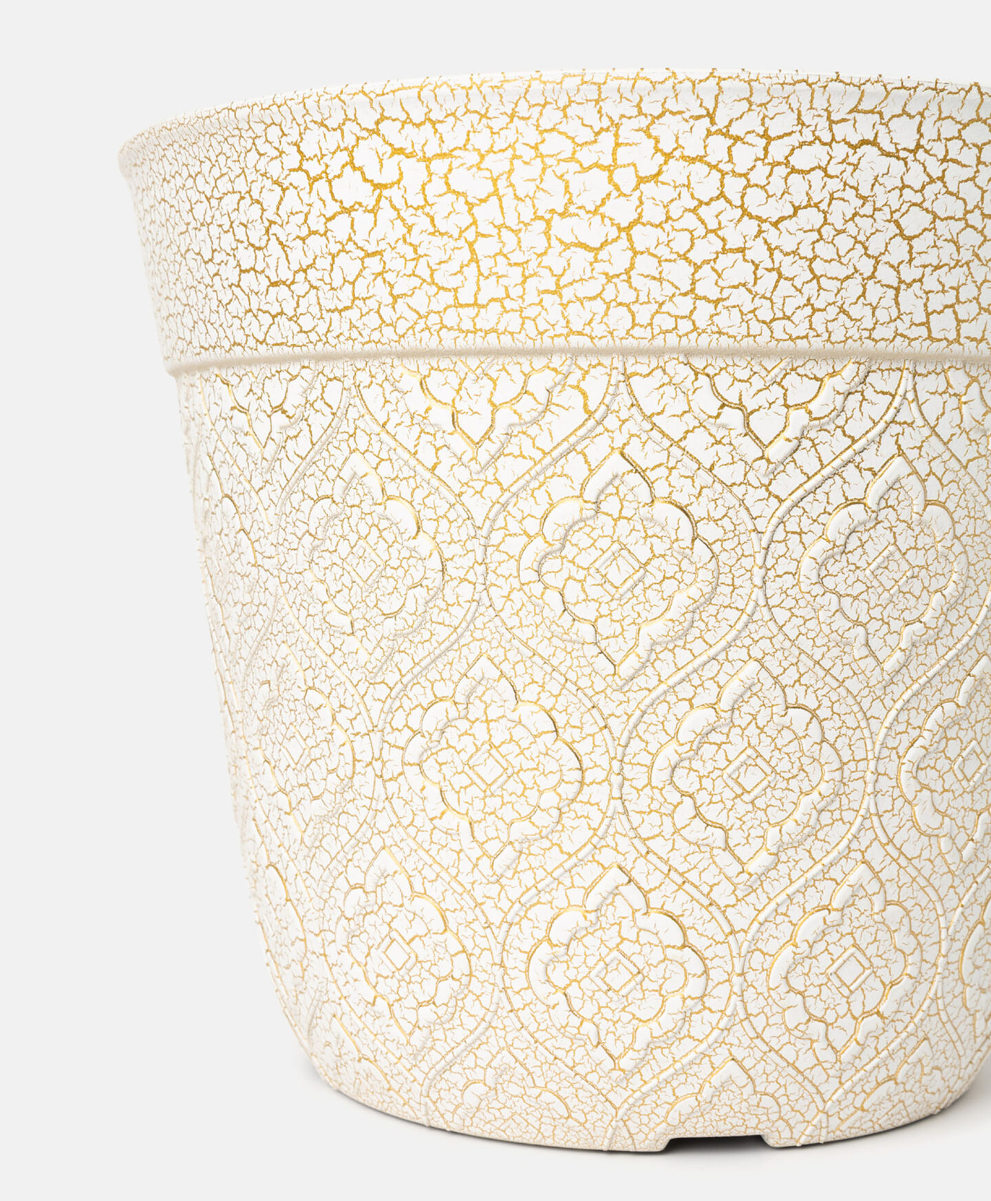 O vaso de 28 cm com padrão chama a atenção pelo design único. A cor suave adapta-se na perfeição à decoração de uma sala ou quarto, realçando a beleza das plantas. O tamanho médio é ideal para plantas de interior como ficus, monstera ou dracena. Produzido em material durável, é leve e fácil de limpar.