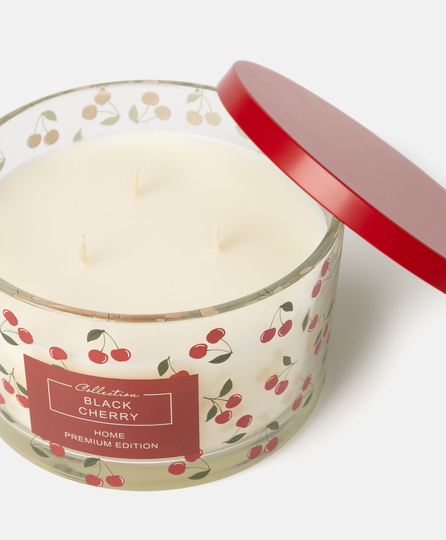 A vela com fragrância em suporte de vidro, com padrão de cerejas, destaca-se pelo design único e longa duração de queima. É um complemento bonito para qualquer espaço. Além de decorar, ajuda a relaxar ao espalhar um perfume agradável. É uma ótima ideia para oferecer como presente a amantes de aromaterapia.