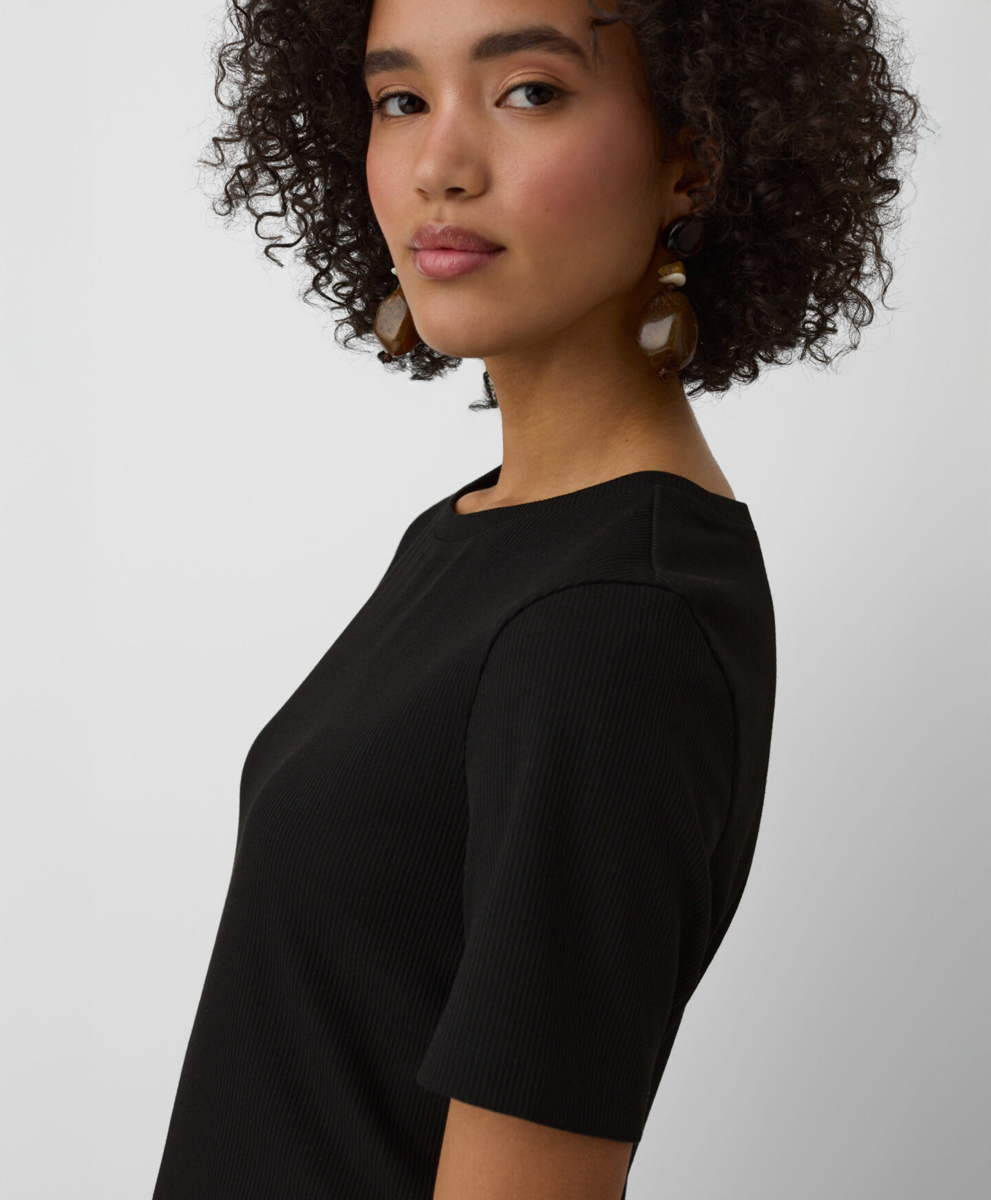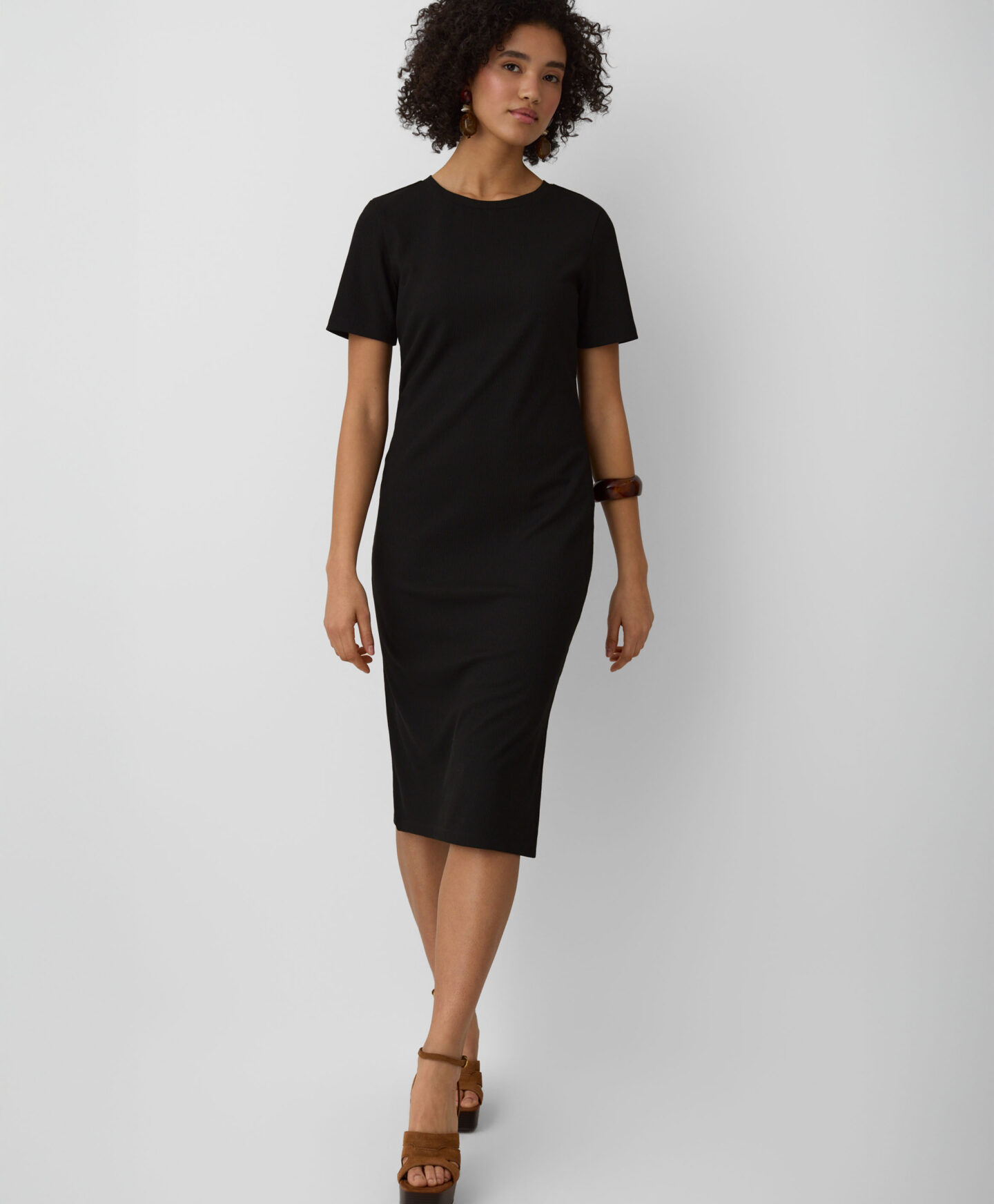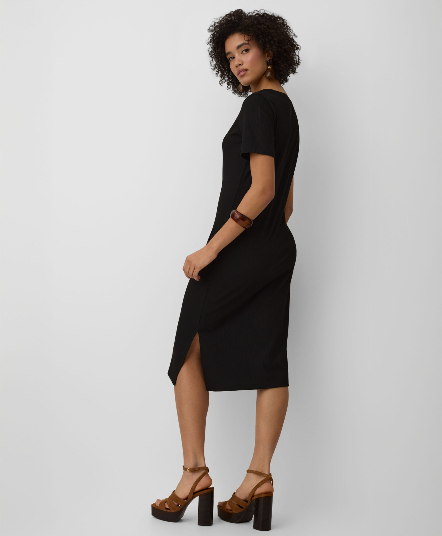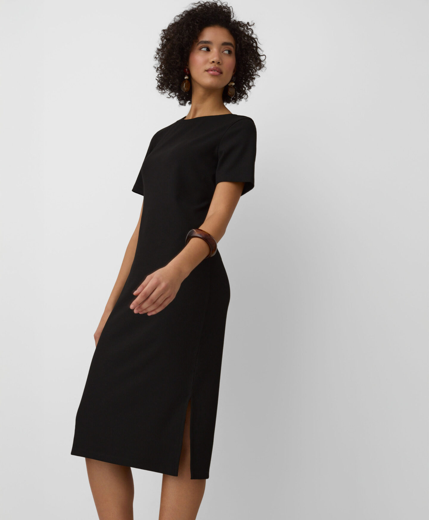 O vestido canelado é incrivelmente versátil. O tom intemporal afina a silhueta, enquanto o corte clássico garante um ajuste elegante. O tecido suave oferece conforto. Ideal para o dia a dia ou ocasiões especiais.