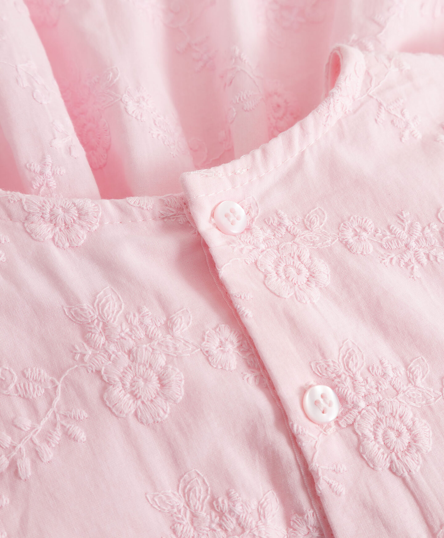 O vestido para bebé em popelina é a escolha mais elegante para os momentos especiais. Com um bordado floral e mangas balão garante um look cheio de charme e graciosidade. O exterior em algodão popelina torna-o leve e duradouro, enquanto o corte largo garante liberdade de movimentos. Combina-o com um casaco e cria um look digno de uma princesa.